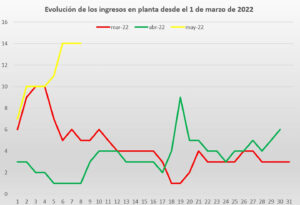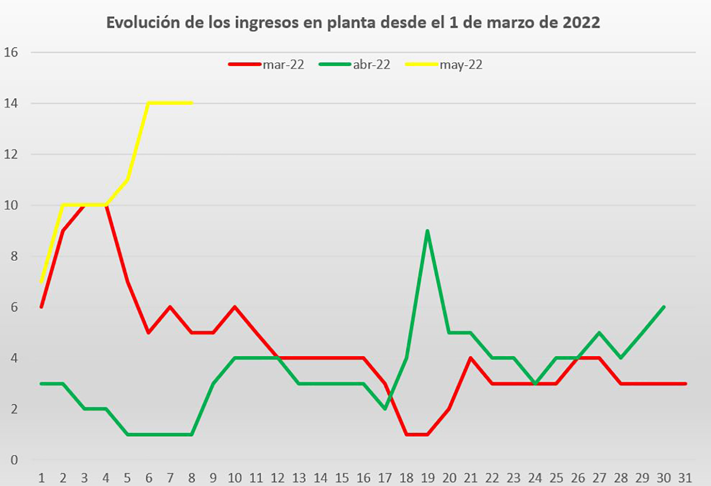 Así, el pasado viernes se nos informaba de un nuevo aumento de pacientes ingresados, ascendiendo a un total de 14, cantidad que se mantenía en las informaciones facilitadas el pasado sábado y ayer domingo, dando así continuidad a esa cifra de 14 personas ingresadas y a la espera de los datos que se faciliten hoy, con el inicio de una nueva semana.