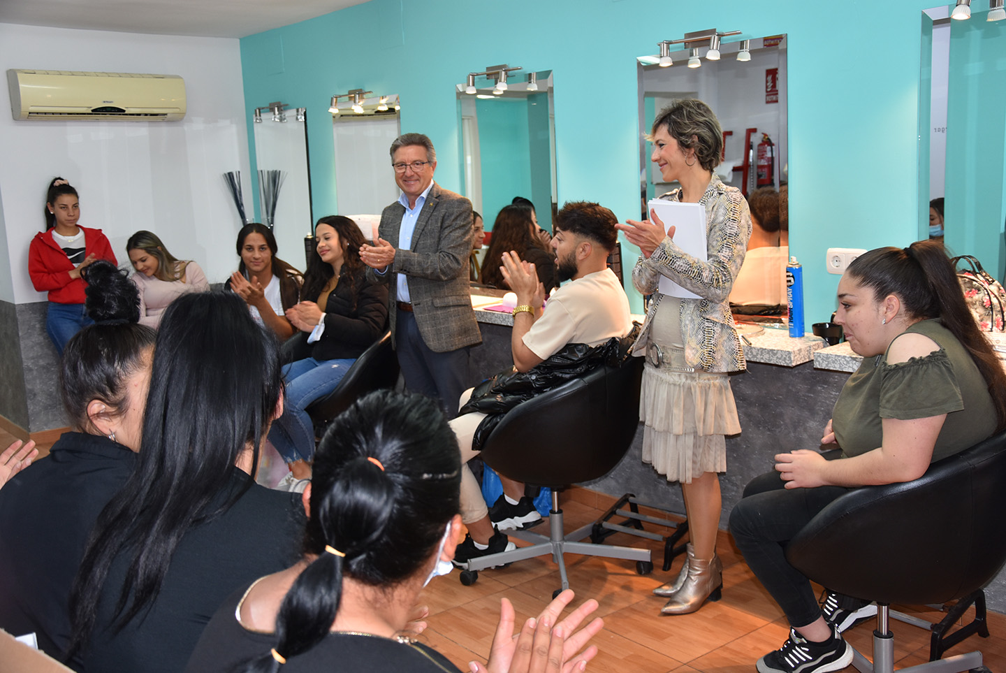 “Nuestro objetivo con la organización de este tipo de iniciativas es que tengáis una salida; en este caso, en un sector que creemos que va a tener un auge especial ahora que empezamos a quitarnos la mascarilla y el cuidado de la imagen adquiere mayor protagonismo”, les comentaba el alcalde, quien aprovechó la ocasión para destacar la gran calidad del personal docente de este taller.