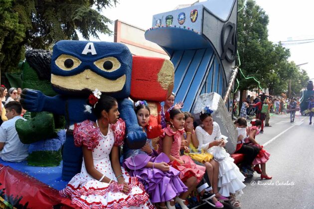 Siguiendo con la cabalgata, hay que decir que se notó la presencia de las carrozas elaboradas por los propios bastetanos, en su mayor parte asociaciones, con un par de ellas muy bien elaboradas y con bastante ingenio, a las que acompañaban otras más modestas pero, en cualquier caso, mejores que esas otras carrozas impersonales que se alquilan para estas ocasiones. Además, varios grupos de baile, charangas, personajes animados y, por primera vez desde hacía mucho tiempo, la presencia de cuatro gigantes al inicio, que recordaban a aquellos otros “gigantes y cabezudos” que durante muchos años participaron en este tipo de desfiles en nuestra ciudad.