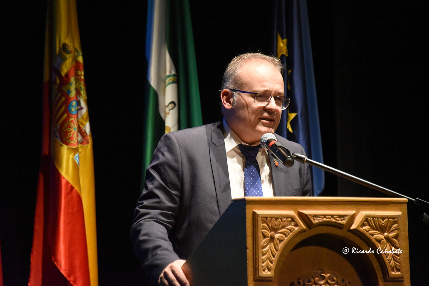 El acto, presentado con mucho estilo por Vanessa Mesas, incluyó sendas actuaciones de la Escuela de baile de Maribel Cano y l presentación que del pregonero hizo el alcalde bastetano. Bueno, lo de “hizo”, con ciertas reservas. Y es que Pedro J. Ramos empezó su discurso en modo alcalde, pero no tardó mucho en confesar que el verdadero discurso de presentación del pregonero le venía amablemente “impuesto” por el propio pregonero, así que no tuvo más remedio que ceñirse al guion y, aunque los textos llegaron a superar su postura formal en algunos momentos, como su risa denunciaba en ocasiones, lo cierto es que sirvió para dar a conocer al pregonero, a los que no lo conocían, si bien la mejor presentación fue la que de sí mismo hizo Míguel a lo largo de toda su intervención.