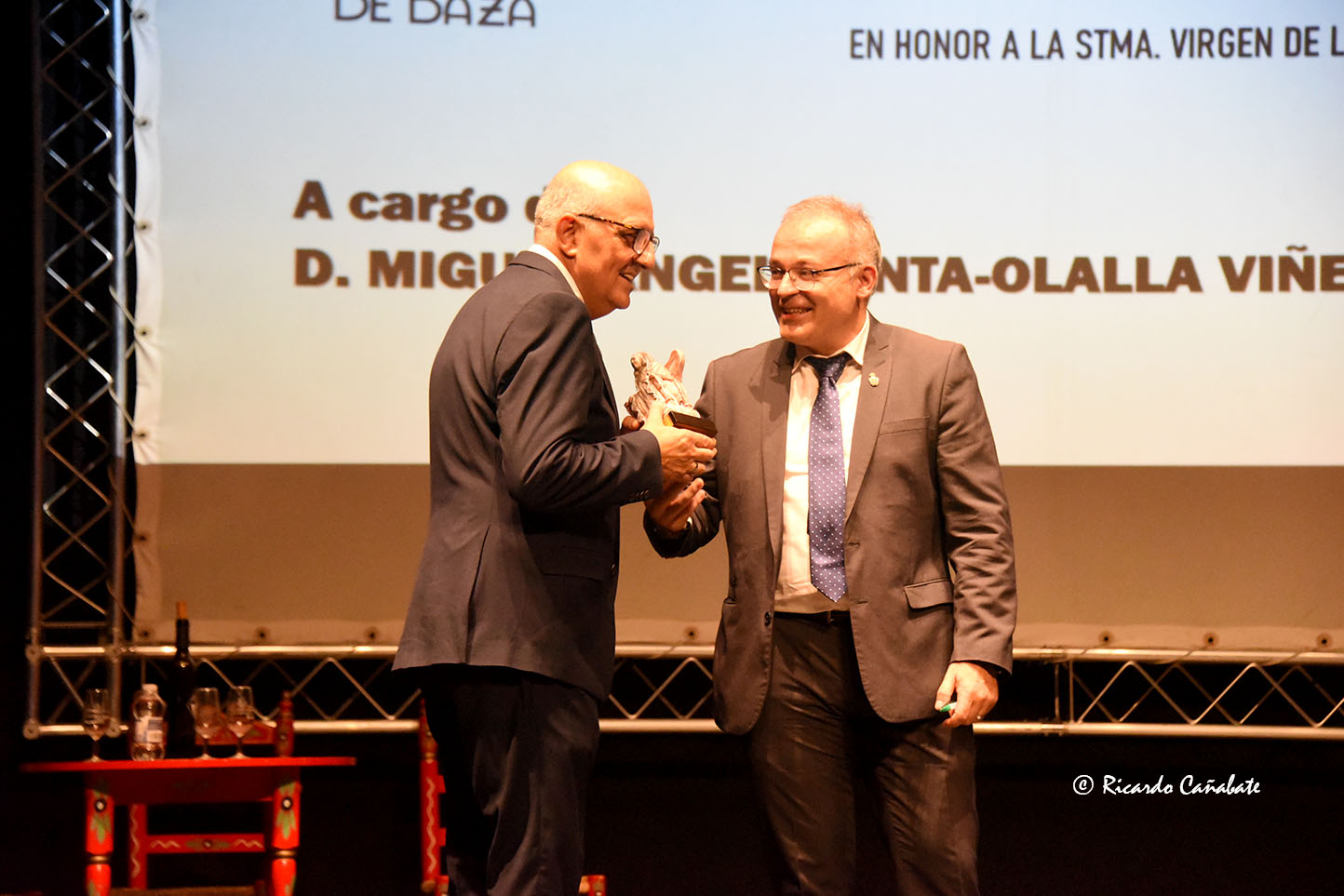 Finalizado el pregón, no faltaron el reconocimiento y agradecimiento oficiales, con la entrega de una reproducción de la Dama de Baza, que el propio alcalde hizo al pregonero, y que le servirá de recuerdo de este acto.