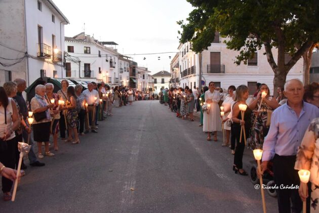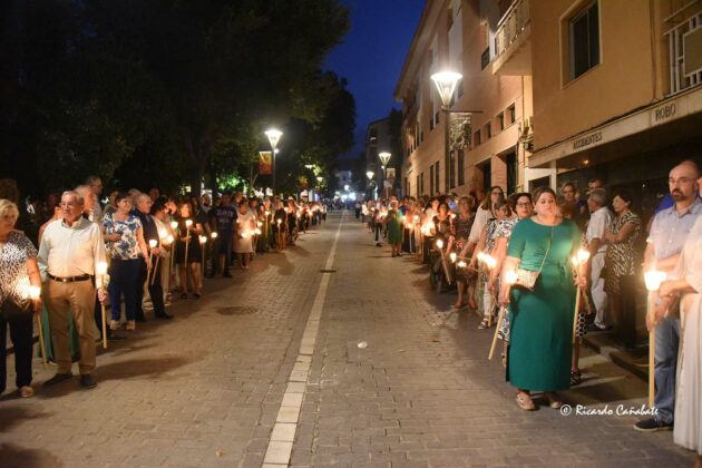 Un cortejo en el que sus filas estaban ocupadas por no menos de medio millar de personas, alumbrando con sus velas, abriendo y cerrando el cortejo sendas bandas de música y con la tradicional entrada y salida del templo con un intenso repique de campanas y el atronador sonido de cohetes que se tiene por costumbre.