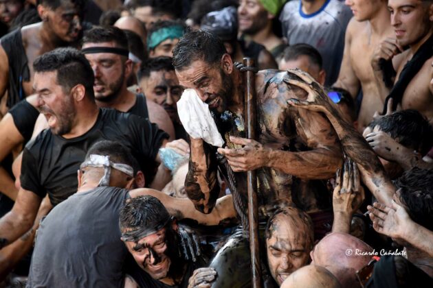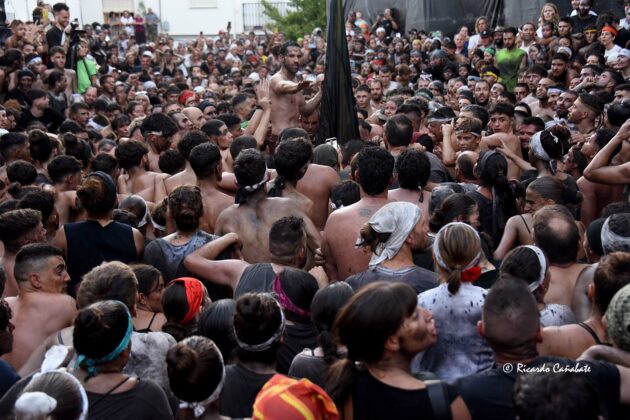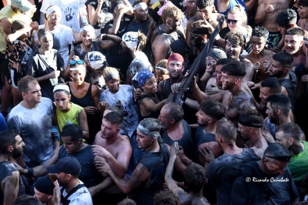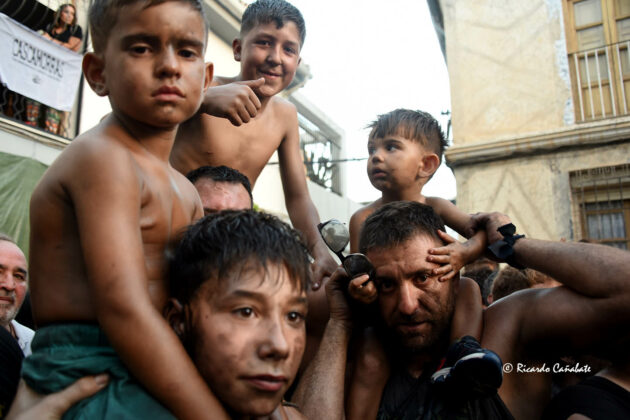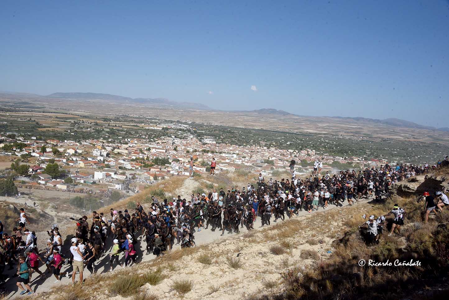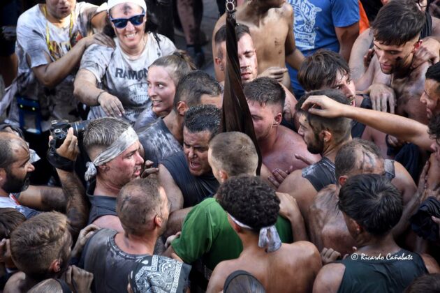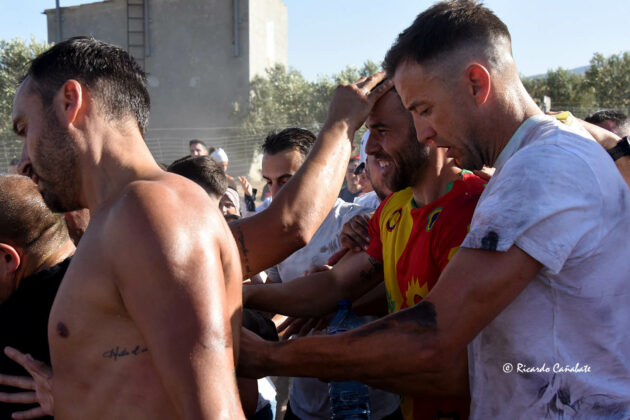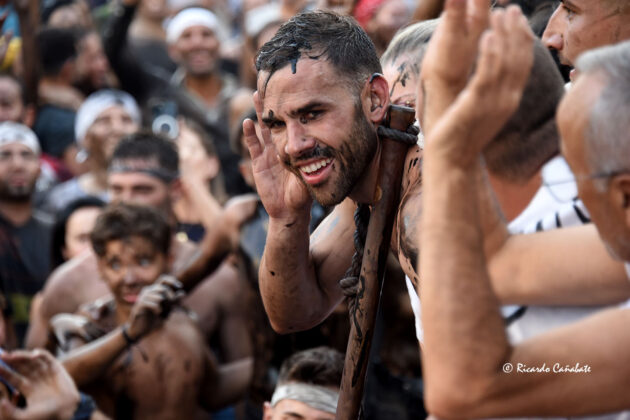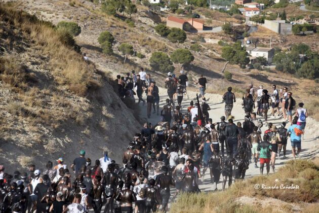 Un paraje que, desde antes del primer cohete, acogía a varios miles de personas, muchos de ellos ya pintados y muchos otros dispuestos a vivir los emotivos momentos que se producen desde que el accitano inicia su acercamiento a “La Curva” donde, ha de recibir la porra que supone el inicio de su vertiginosa carrera, sorteando personas y rociados de pintura, acabó de convencerse, eliminando de golpe algunas dudas planteadas sobre su machacona intención de llegar limpio a la Merced. cuando, desde el primer segundo, los bastetanos no le iban a dejar permanecer sin mancha alguna.