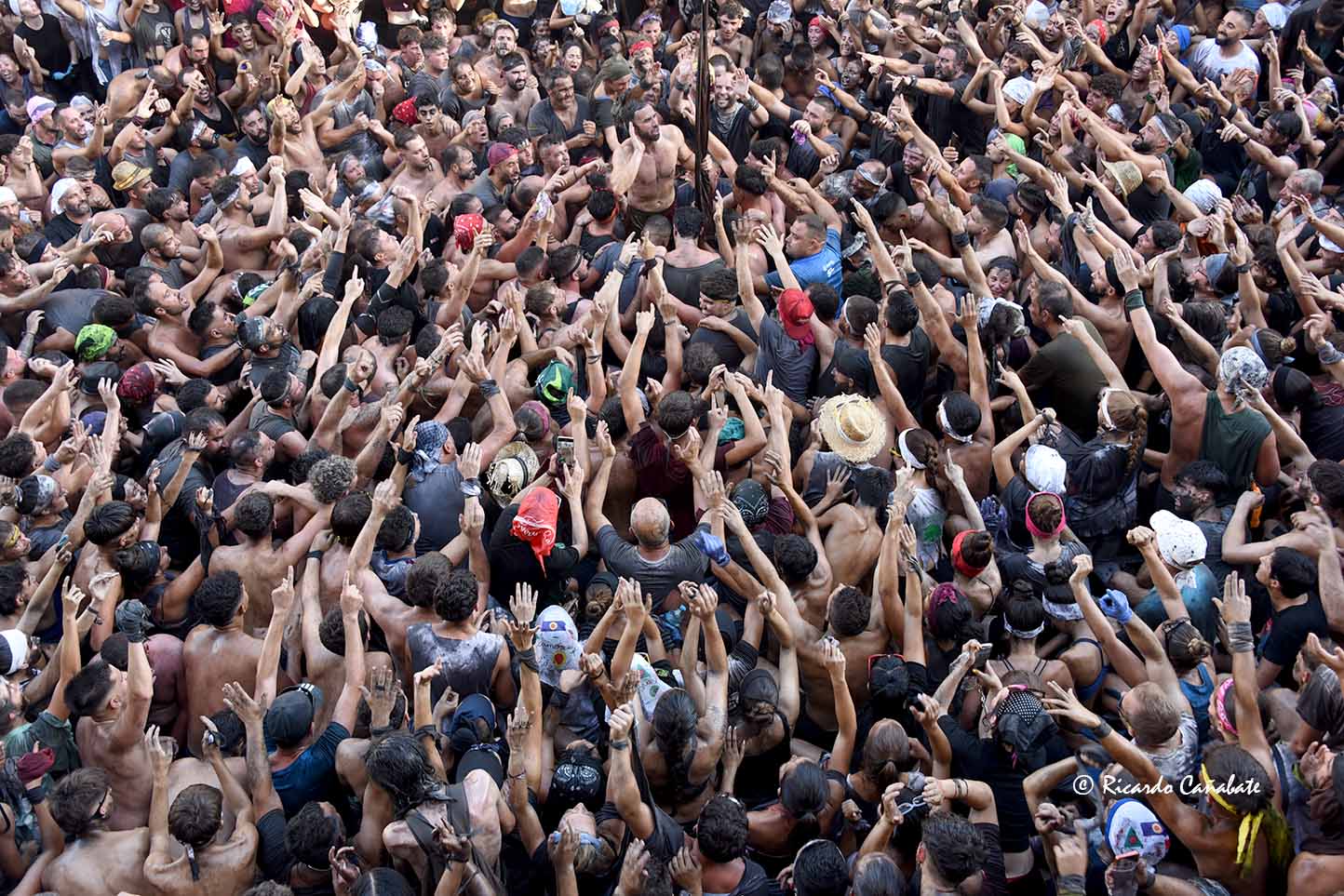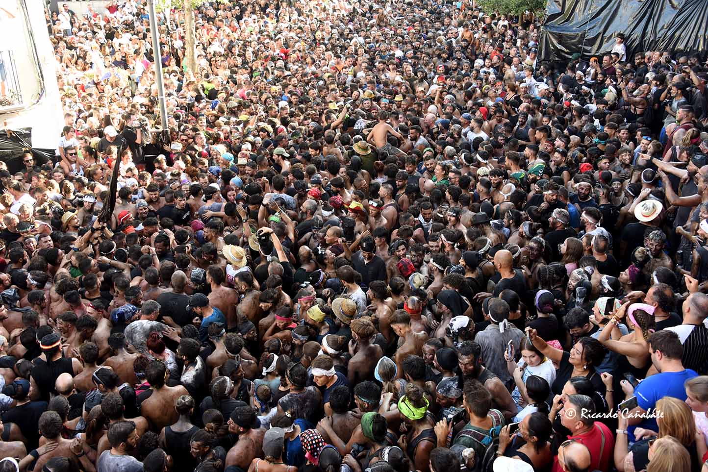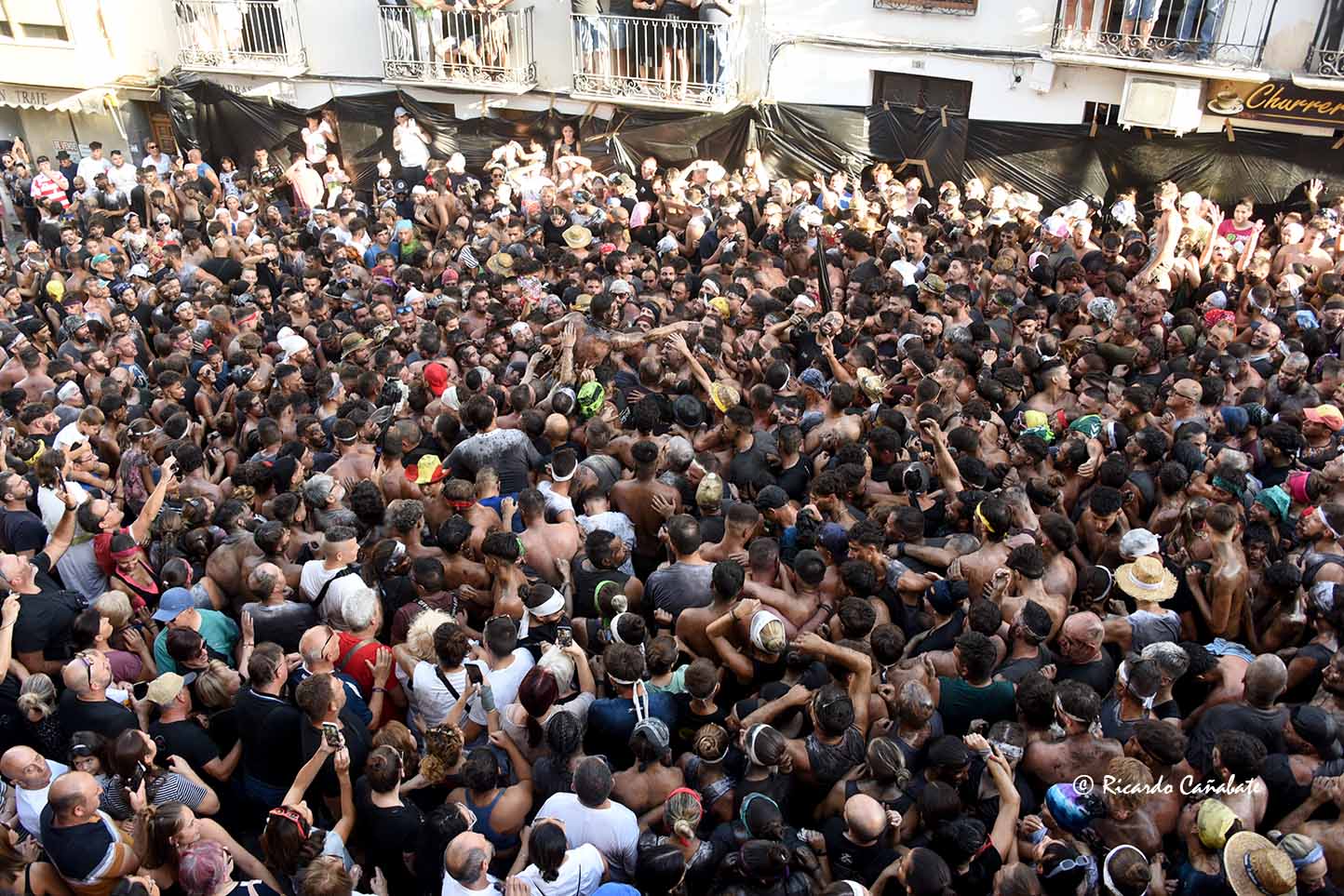 Un paraje que, desde antes del primer cohete, acogía a varios miles de personas, muchos de ellos ya pintados y muchos otros dispuestos a vivir los emotivos momentos que se producen desde que el accitano inicia su acercamiento a “La Curva” donde, ha de recibir la porra que supone el inicio de su vertiginosa carrera, sorteando personas y rociados de pintura, acabó de convencerse, eliminando de golpe algunas dudas planteadas sobre su machacona intención de llegar limpio a la Merced. cuando, desde el primer segundo, los bastetanos no le iban a dejar permanecer sin mancha alguna.