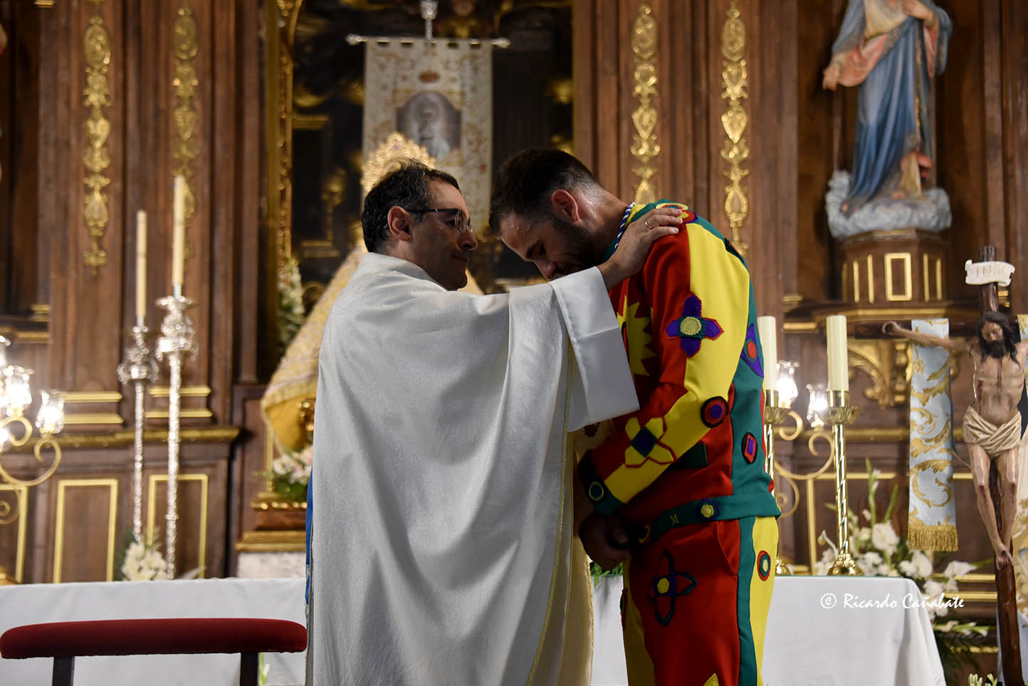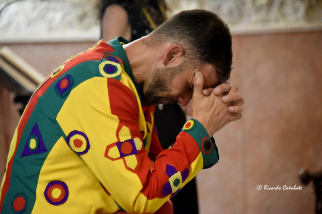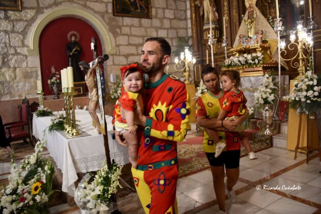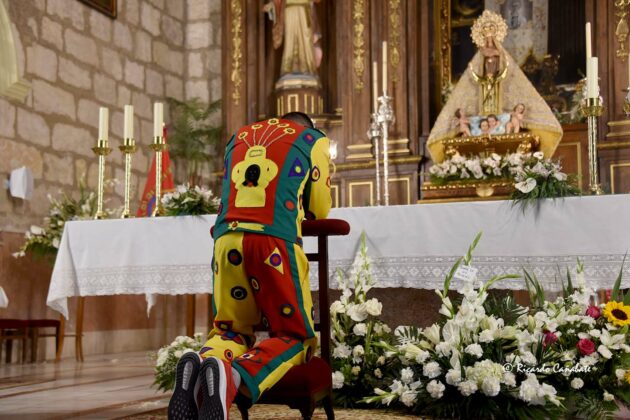 No mucho después, Jose Heras se encontraba con los suyos: su mujer y sus dos niñas, junto a sus padres, con los que se dirigió por la calle Nueva hasta el acceso a la iglesia por la puerta del Memorial. Llegaba, por fin, a tener frente a sí a la Virgen de la Piedad ante la que se arrodilló para hablar con Ella, en unos momentos de absoluto silencio y emoción. Agradeció después el haber tenido la ocasión de volver a encarnar a Pedernal y recibió, de anos de la presidenta de la Hermandad de la Virgen de la Piedad, la que era su segunda medalla como Cascamorras, al ser conocedores de que la primera está donde él quiso que se fuera.