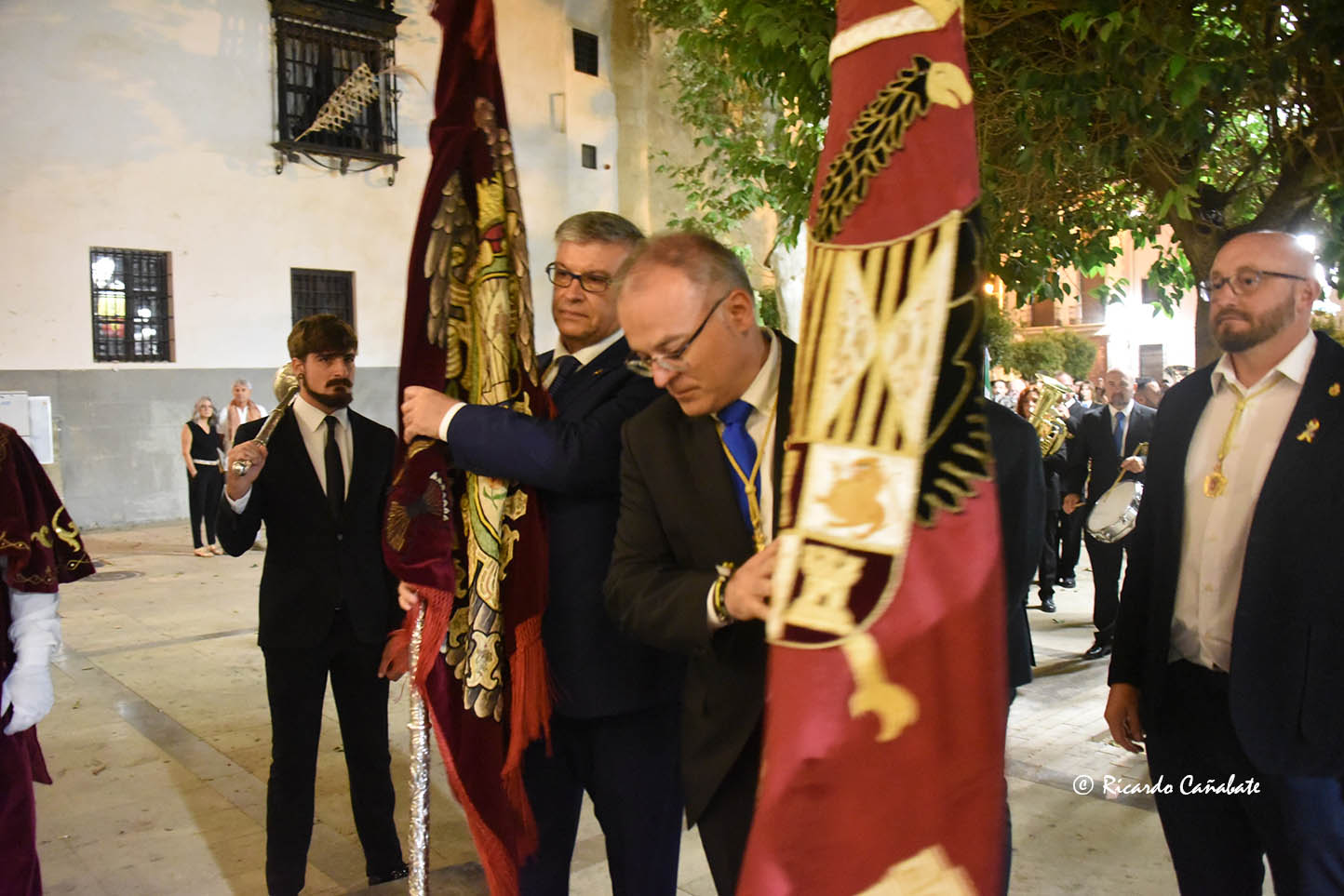 Un acto siempre solemne y emotivo, que tiene lugar en los soportales de la antigua Casa de Cabildo y hoy Museo Arqueológico Municipal, mientras se interpreta el Himno Nacional y los abanderados entregan los pendones a sus respectivos alcaldes, momento con el que se terminan los actos protocolarios.