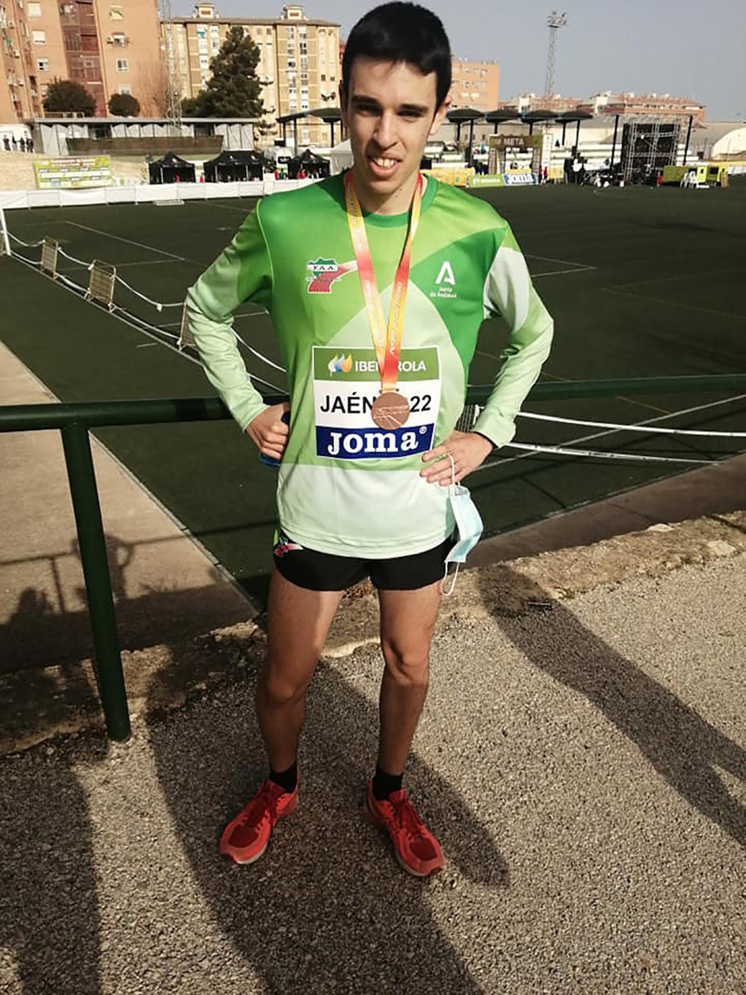 Por su parte, Sergio Espínola, atleta nacido en junio del 2003, salía con el dorsal 376 y lograba sumar 42 puntos ,al entrar en esa misma posición, y un tiempo de 26:59 con lo que completó el sexteto andaluz que lograba la tercera posición por equipos y subir al podio a recoger la medalla de bronce, junto a Rufo, Carlos Ángel, Prieto, Mármol y F.J. Ruiz.