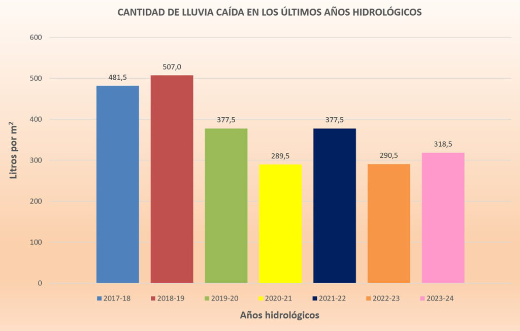 Anoche se cerraba el año hidrológico 2023-24 con un registro de lluvias que lo sitúa entre los peores de entre los siete últimos años con una mínima mejora sobre 2020-21 y 2022-23 (ARTÍCULO REEDITADO). Un artículo que volvemos a reescribir por un error en la transcripción de los datos, que no advertimos en su momento, por el que los 11,5 l/m2 caídos el 26 de febrero pasado, se convertían en 115 l/m2, variando notablemente los parámetros que de ello se derivan. Un error sobre el que agradecemos la observación que nos hizo llegar el director de la OCA bastetana y que nos lleva a mejorar nuestra información, así como a pedir disculpas a nuestros lectores, a quienes recordar que estaremos siempre dispuestos a recibir cualquier indicación que, como en este caso, nos permita llevar a nuestros lectores la mejor información que seamos capaces de transmitir.