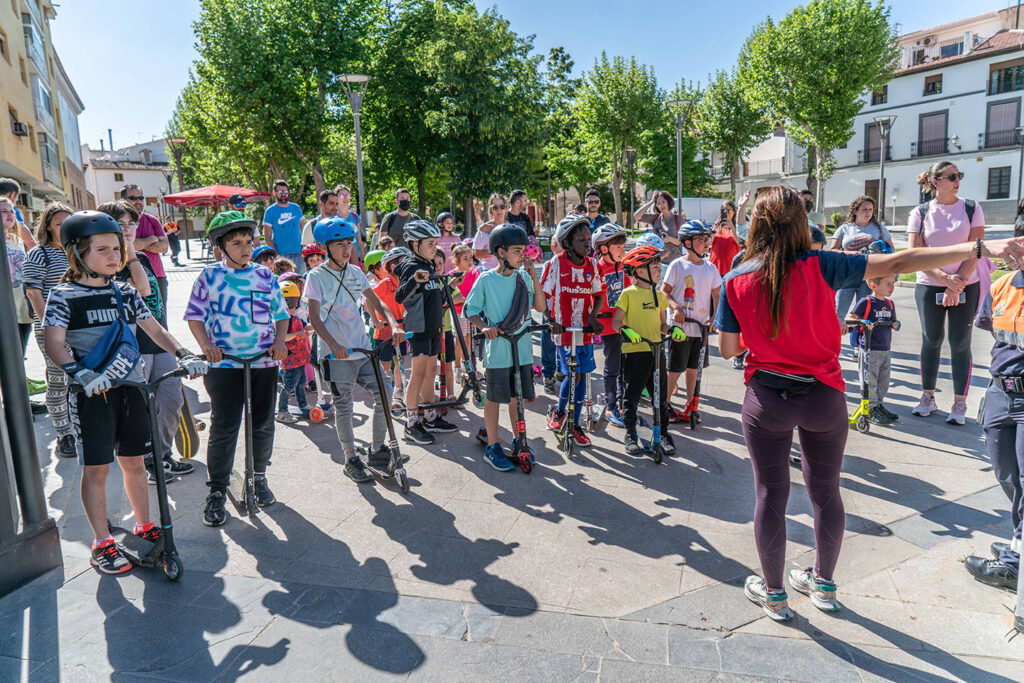 Baza planta la semilla de la movilidad sostenible entre los más pequeños. Medio centenar de niños y niñas tomaron parte el pasado sábado en el Primer Día sobre Ruedas de Baza. Una actividad que planteaba un recorrido urbano en patín, patinete o monopatín, para concienciar sobre la necesidad de apostar por una movilidad sostenible. Como atractivos añadidos, se sortearon dos patinetes y se realizaron actividades lúdicas en el Polideportivo Municipal, una vez finalizado el recorrido neutralizado por las calles de Baza.