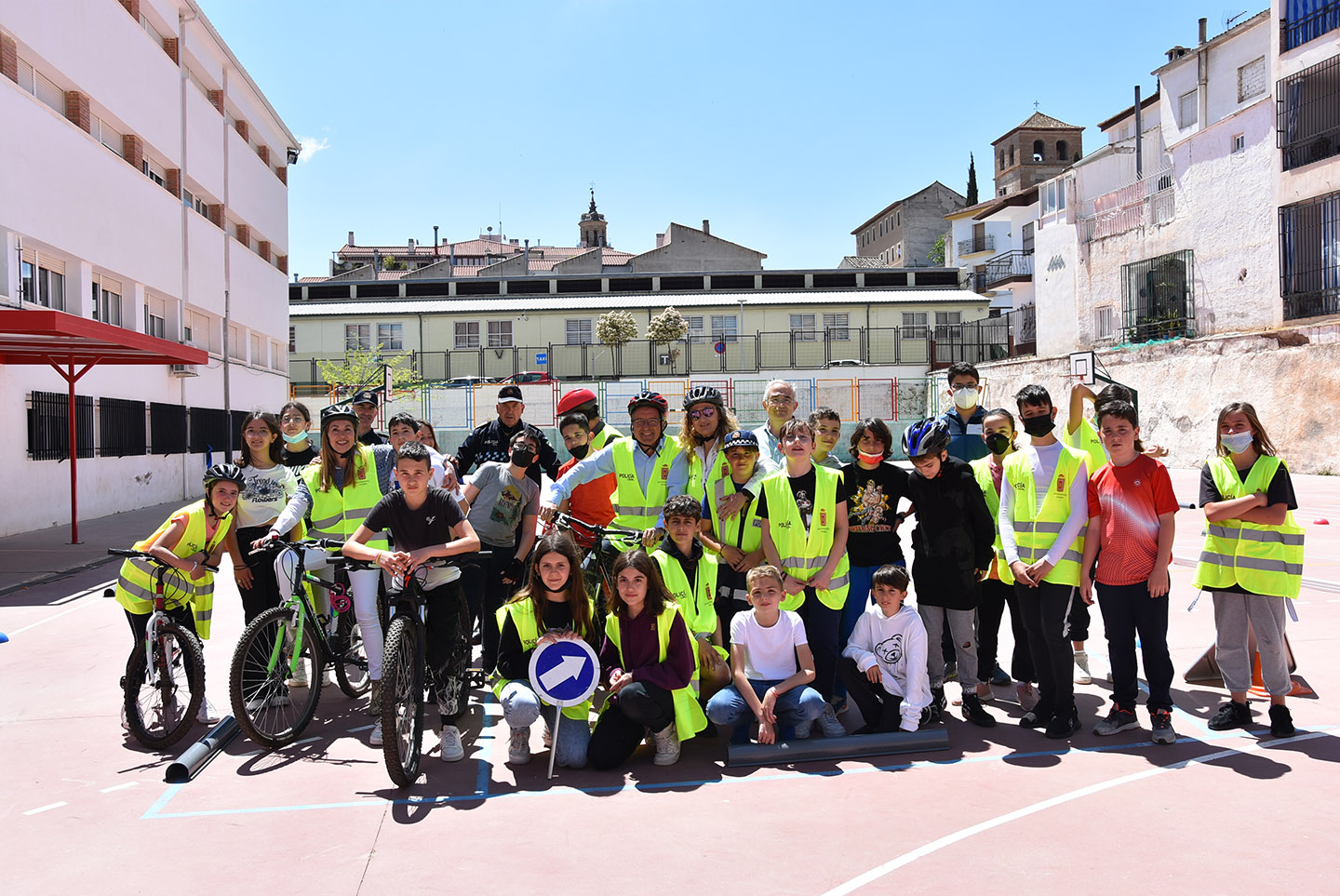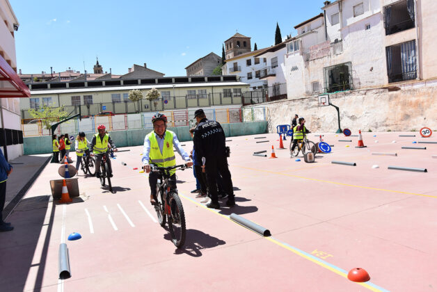 La sesión se completa con una parte práctica en la que se realiza un taller de seguridad vial en el patio del centro a través de un circuito con señalización que es recorrido en bicicleta por los alumnos, simulando además grupos de peatones e imprevistos que nos podemos encontrar en cualquier vía pública. Siempre, por supuesto, respetando las normas de circulación y poniendo en práctica lo expuesto previamente en el aula.