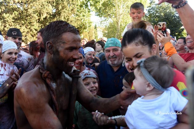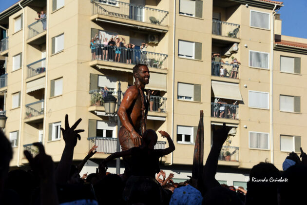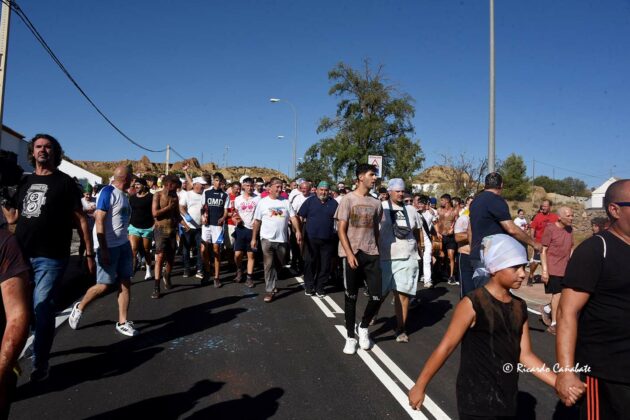 En todo caso, la primera jura realizada en el cruce de la Estación, junto al paso a nivel, ya daba claras muestras de que Cascamorras tenía el mando y el resto lo ponían las ganas de pasarlo bien de los accitanos. A partir de ahí nuevas juras, con relevos respetados en el porte de la bandera, hasta llegar al puente sobre el Río Verde, donde siempre resulta un momento más especial y donde esta vez Heras alzaba al cielo a la más pequeña de sus dos hijas, como la más pura imagen de lo que los niños representan ya hoy para el disfrute y el mejor futuro de esta fiesta.