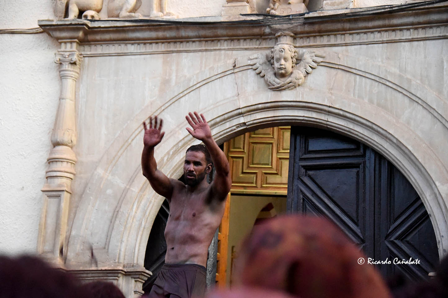 Después, marcha atrás para retomar la ruta que le había de llevar a la Iglesia de San Miguel, en cuya plaza no quedaba un hueco en las mejores posiciones para presenciar el final de la carrera y la despedida del Cascamorras. Una despedida, que en contra de lo que sucede en Baza, se hace con la última jura de bandera y el adiós a quienes facilitan la entrada de Cascamorras al templo, dando por terminadas las hostilidades.