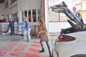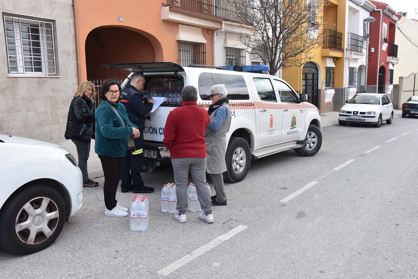Durante toda la mañana de ayer, lunes 11 de marzo, se entregaron miles de litros de agua envasada, tanto a vecinos como a entidades públicas de la zona afectada. En algunos casos los mismos ciudadanos se trasladaron a los puntos de distribución establecidos y, en otros, fueron los efectivos del Parque de Bomberos quienes repartieron el agua en colegios, centros infantiles y otras instituciones e incluso en los mismos domicilios de las personas que se han puesto en contacto con los servicios municipales, manifestando la imposibilidad de ir a recoger el agua en persona.