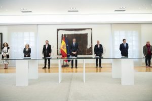 Gobierno y agentes sociales firman el Acuerdo Social que prorroga los ERTE hasta el 30 de junio. El presidente del Gobierno, Pedro Sánchez, ha presidido este lunes la firma del Acuerdo Social en Defensa del Empleo, en el Complejo de La Moncloa. Se trata de un acuerdo histórico que incluye un conjunto de medidas de protección del empleo y de la actividad productiva para que nadie se quede atrás en la crisis del Covid-19.