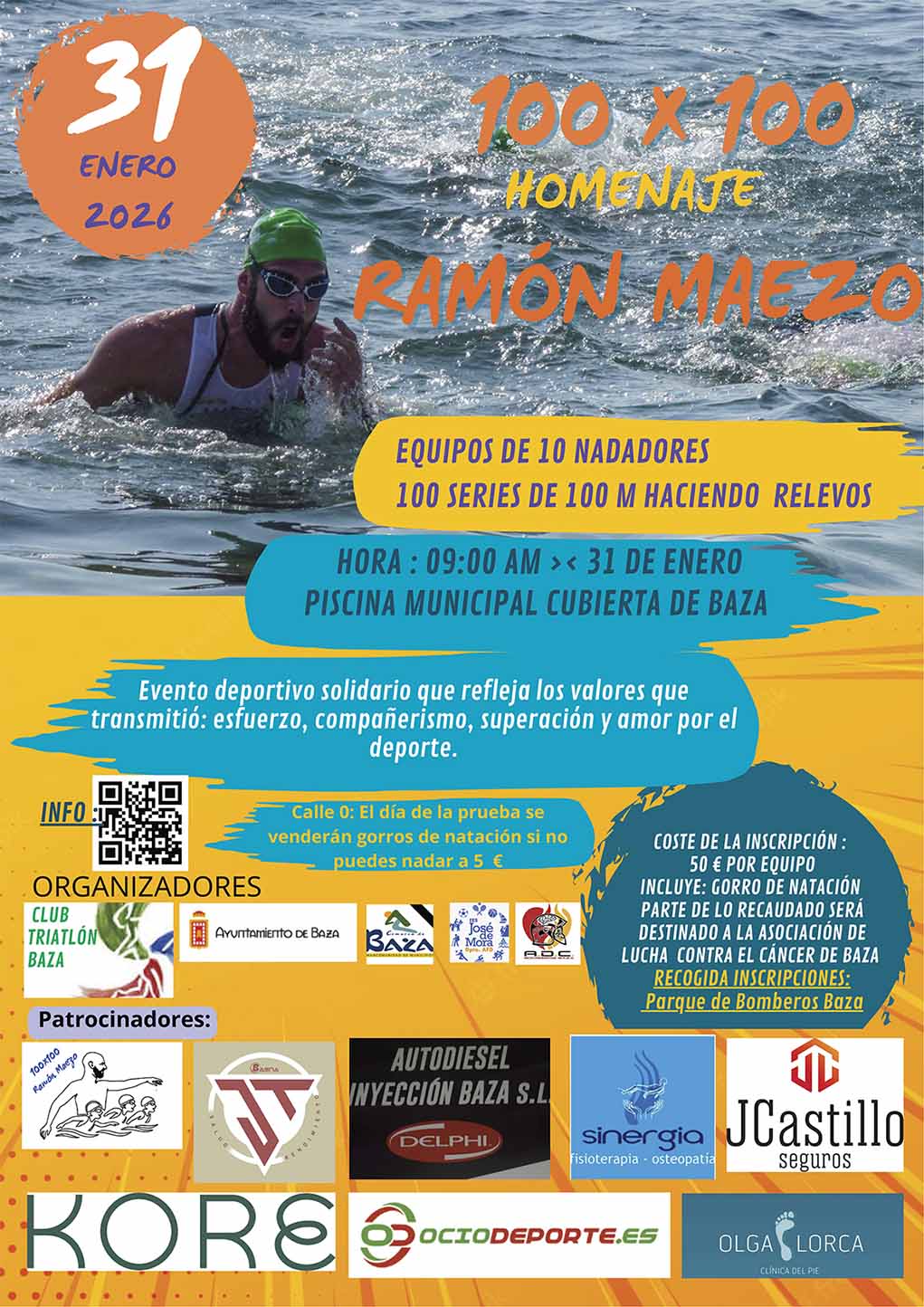 Un reto solidario en el agua de la Piscina Municipal Cubierta rendirá homenaje a Ramón Maezo en Baza. La Piscina Municipal Cubierta de Baza acogerá el próximo sábado 31 de enero un emotivo evento deportivo y solidario en memoria de Ramón Maezo, una persona muy querida cuya huella permanece viva entre familiares, amigos, compañeros y alumnos. La iniciativa, concebida como un homenaje colectivo, pretende mantener presentes los valores que marcaron su forma de entender la vida y el deporte: esfuerzo, compañerismo, superación personal y pasión por la actividad física.