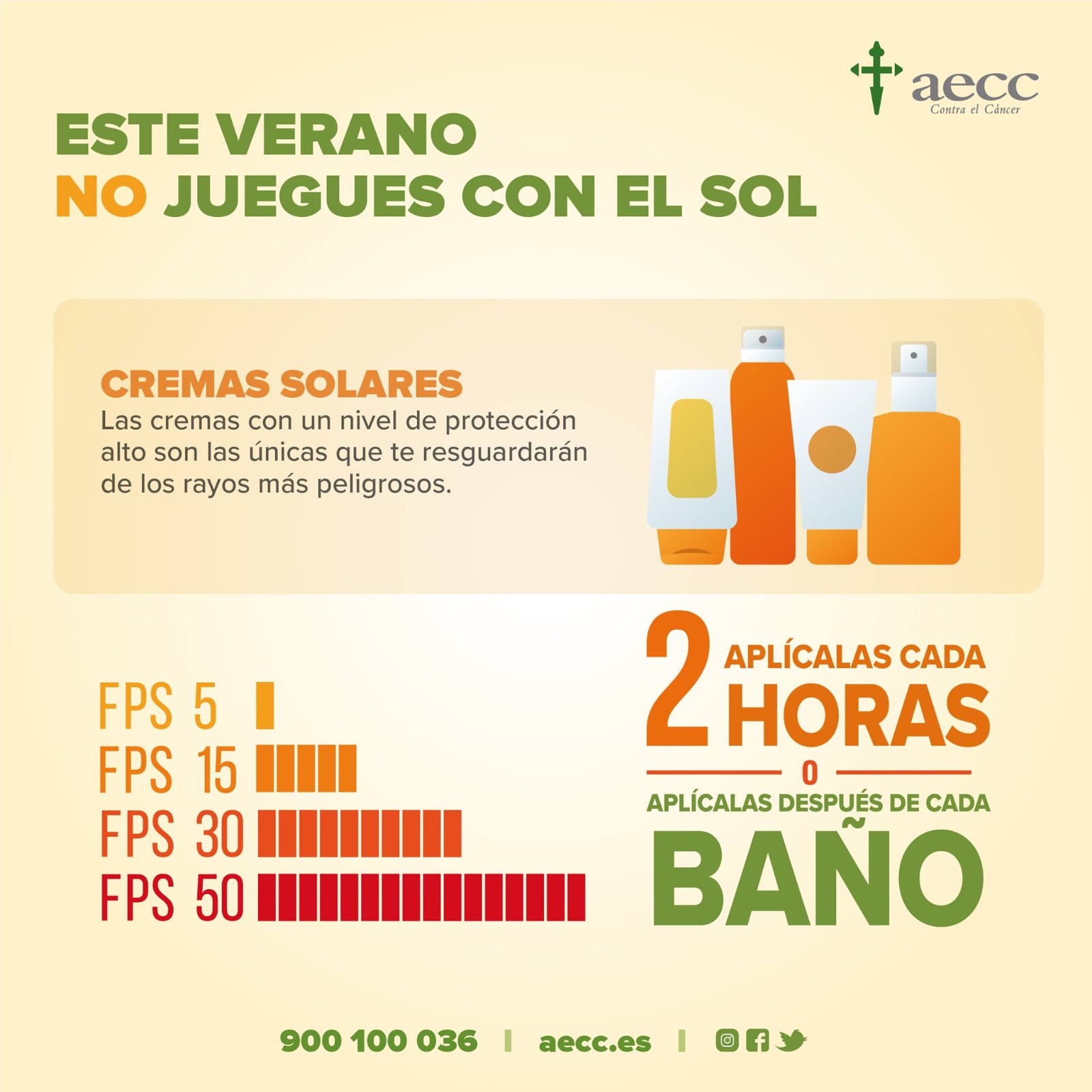 La AECC, a través de sus campañas, recuerda la importancia de la prevención en este tipo de enfermedad y destaca que la protección de la piel es fundamental. En este sentido destacan una serie de precauciones que son muy importantes: