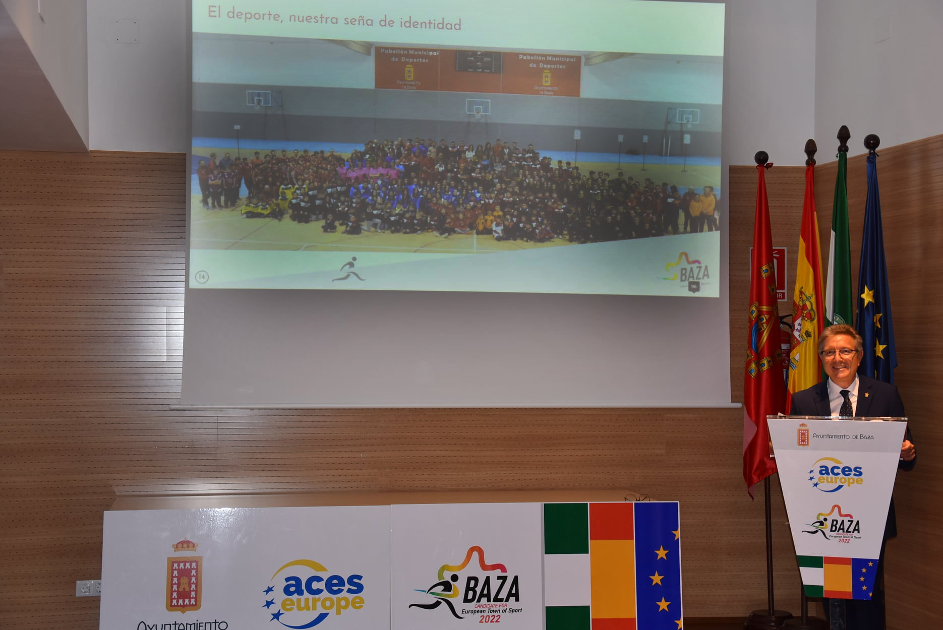 El distintivo Ciudad Europea del Deporte es el máximo reconocimiento que se otorga a las ciudades europeas de entre 1.000 y 25.000 habitantes en base a la evaluación de sus políticas en materia deportiva, así como de la implicación de toda la ciudadanía en esa gestión deportiva. Este reconocimiento tiene una duración de un año en el que se haría un esfuerzo organizativo de actividades para mostrar la imagen de Baza hacia el exterior como Ciudad del Deporte.