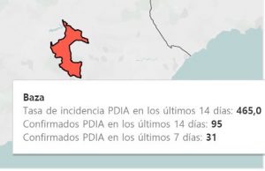 Baza baja de la tasa de 500 contagios y podría dejar el confinamiento perimetral el sábado, si mantiene o mejora esos valores el próximo jueves. Conforme se venía esperando, cuando ayer se daban a conocer los nuevos datos de la tasa de incidencia por 100.000 habitantes, se confirmaba que la tendencia evolutiva de la ciudad de Baza llegaba a situar a nuestra ciudad por debajo de la tasa 500, concretamente 465,0, lo que de continuar así significaría que podría dejar el confinamiento perimetral el próximo sábado, lo que parece bastante posible pues los confirmados a 14 días han descendido ya a 95 y los confirmados a 7 días están en 31.