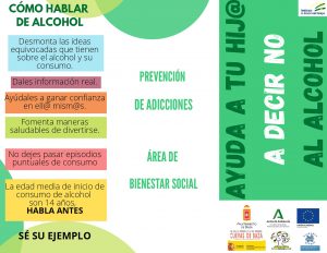 Para esta campaña se han realizado dos folletos divulgativos: “Cómo ayudar a mi hij@”, dirigido a familiares, y “Di no al alcohol”, dirigido a adolescentes. Ambos van a ser repartidos también por los institutos y espacios de prevención del municipio, con el fin de que llegue al mayor número posible de jóvenes.