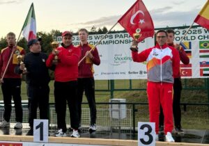 En una final de altísimo nivel, el oro fue para el turco Muaz Erdem Madran, que se impuso con un brillante registro de 41 platos, mientras que la plata viajó a Italia de la mano de Gabriele Nanni, con 38 aciertos. El bastetano Briñas Mora completó el podio con 30 platos, lo que le permitió subirse a un cajón mundialista en una de las competiciones más exigentes del calendario internacional.