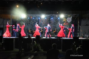 Continuó la velada con la actuación del Grupo Municipal bastetano, que utilizó dos de los trajes de su vestuario: el de lunares y el rojo para las chicas y, para los hombres, el traje de flamenco con algunas variantes, según las actuaciones iban requiriendo.