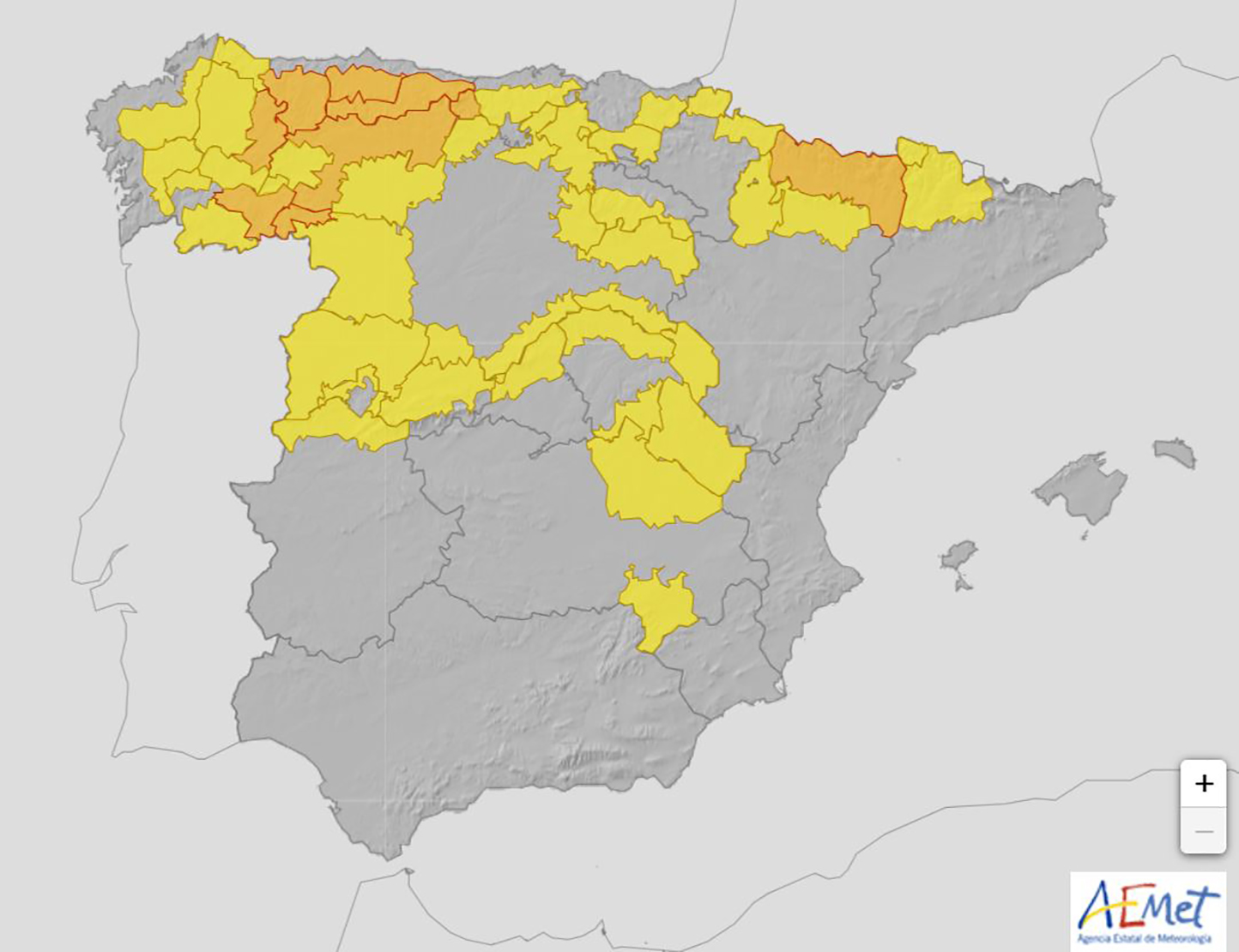 Según la previsión de la Agencia Estatal de Meteorología (AEMET), las nevadas afectarán principalmente a la Cordillera Cantábrica, Macizo Galaico, Pirineos, Sistema Ibérico, Sistema Central y Meseta tal y como muestran los siguientes mapas, que se pueden aumentar de tamaño al clicar sobre ellos: