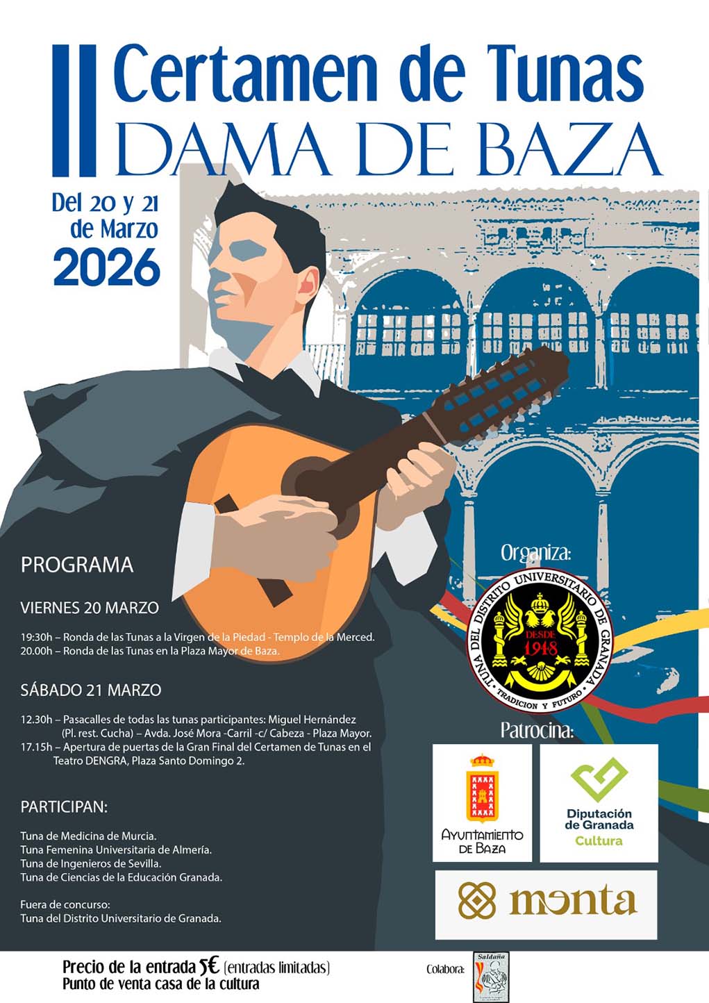 El evento cuenta con el patrocinio del Ayuntamiento de Baza, el área de Cultura y Educación de la Diputación de Granada y la empresa Menta, además de la colaboración de Saldaña, trajes de tuno.