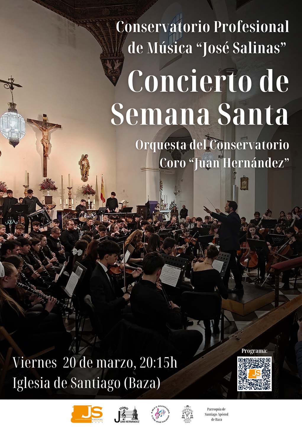 El programa contará con la participación de la orquesta del conservatorio y del coro “Juan Hernández”, en una propuesta musical centrada en obras del repertorio sacro y clásico, especialmente vinculadas al ambiente de la Semana Santa. La actividad está organizada por el propio conservatorio bastetano con la colaboración de la Diócesis de Guadix y de la Parroquia de Santiago Apóstol de Baza.