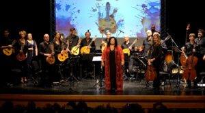 No se pueden pasar por alto, algunas cuestiones musicales que destacaron en el concierto, tales como el trabajo de virtuosismo de las bandurrias de la Orquesta, tanto primeras como segundas; o el color tímbrico y magnifica interpretación de los laúdes y laudines en los contracantes, o la precisión del bajo laúd, así como el peso armónico estupendamente balanceado por las guitarras donde, además hay que destacar los “solos” con profundidad de Jaime Cañas y los expresivos y virtuosos pasajes que interpretó Mario Alonso Herrera con su guitarra manouche, o la sutileza y maestría con que envuelven a la Orquesta las baquetas de Diego Alonso Herrera. Y cómo no, los timbres añadidos a esta formación flauta y cello, y todo ello magistralmente dirigido por su colosal directora, Pilar Alonso.