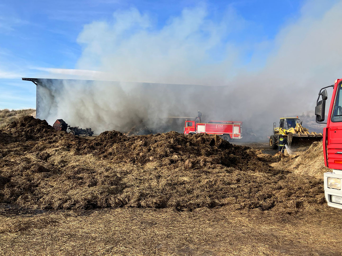La intervención consistió en el movimiento de la paja con una cargadora, apagándola al mismo tiempo, para volver a colocarla en un lugar sin riesgo. Se extinguió el fuego de todos los vehículos y se dejó arder la paja en el interior de la nave, ya que se corría el riesgo de que se pudiera caer por la carga térmica que habían sufrido las vigas. A ese riesgo se sumó el de acceder con la cargadora para realizar el trabajo. Una vez estabilizado el incendio, se quedó toda la noche un retén de control, ante posibles nuevos focos. Ya al día siguiente, se continuó con el movimiento de la paja hasta que quedó todo totalmente controlado. No obstante, todavía se quedó en el lugar un retén, hasta las 23.59h, momento a partir del cual el propietario quedó al cargo de seguir vigilando, aunque el servicio no se dio por concluido hasta las 9:05h del sábado 15.