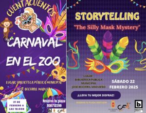 El sábado 22 de febrero, la diversión continuará con una doble sesión especial. A primera hora de la tarde se llevará a cabo un dinámico storytelling, en el que los pequeños espectadores participarán activamente en la narración a través de juegos y preguntas. A continuación, tendrá lugar el cuentacuentos bilingüe “The Silly Mask Mystery”, en el que un misterioso baile de máscaras llevará a los niños a resolver un divertido enigma mientras practican inglés de forma amena y entretenida.