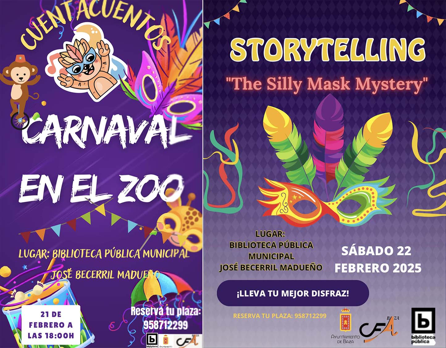 La Biblioteca Municipal adelanta al próximo fin de semana sus actividades del Carnaval con cuentacuentos y diversión para el viernes y sábado. Para garantizar que todas las familias puedan disfrutar del Carnaval sin solapamientos con otros eventos, la Biblioteca Municipal de Baza ha decidido adelantar sus actividades festivas al fin de semana del 21 y 22 de febrero. Será un Carnaval diferente, lleno de historias, imaginación y mucha diversión para los más pequeños.