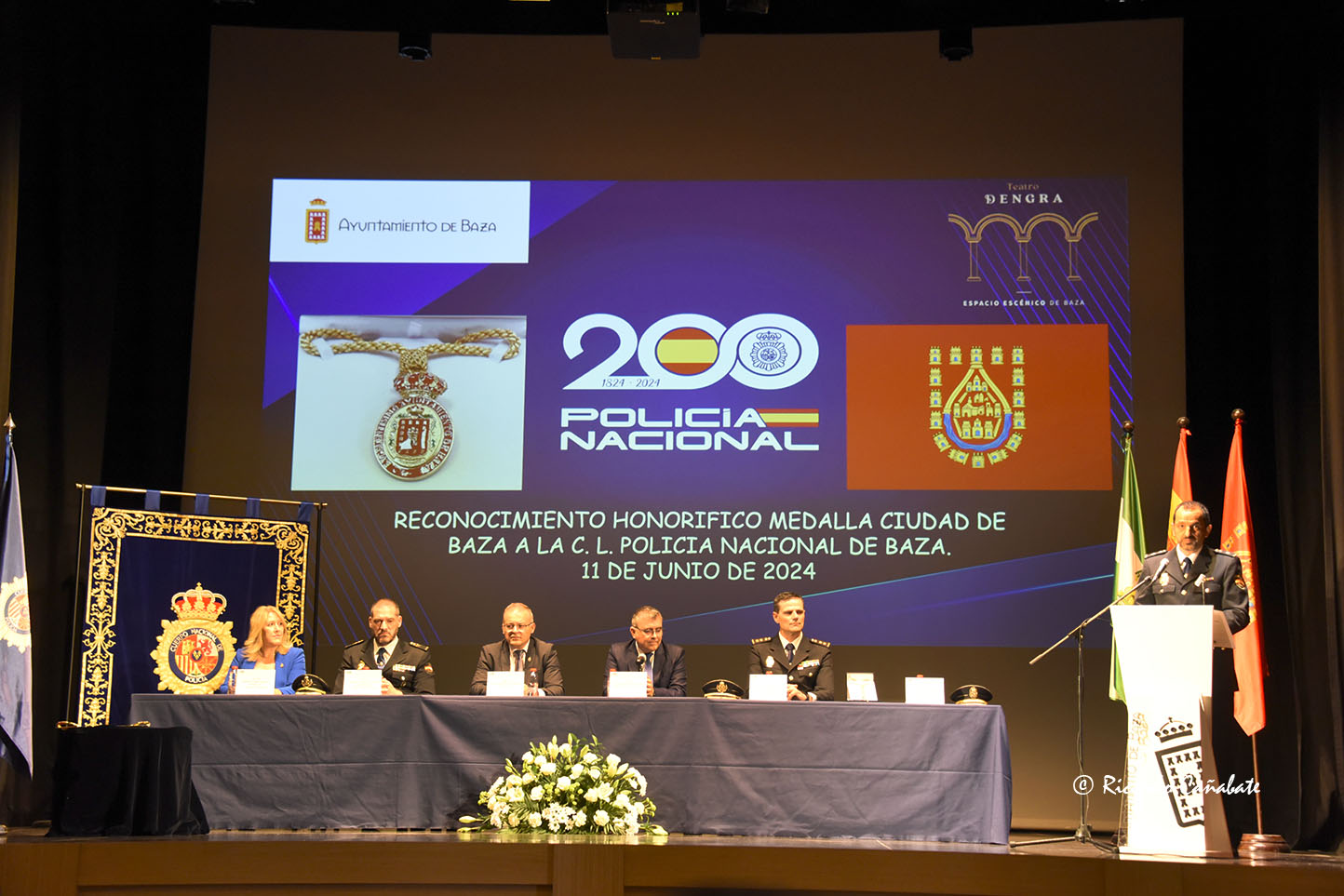 Baza reconocía ayer la labor y el esfuerzo de la Comisaría de Policía Nacional, a la que se entregó la Medalla de la Ciudad, coincidiendo con el 200 aniversario de seste Cuerpo. Ayer tenía lugar este reconocimiento con el que la ciudad bastetana, por iniciativa del Ayuntamiento, reconocía los méritos de este Cuerpo de Seguridad con la entrega de la Medalla de la Ciudad que tuvo lugar en el Teatro Dengra.