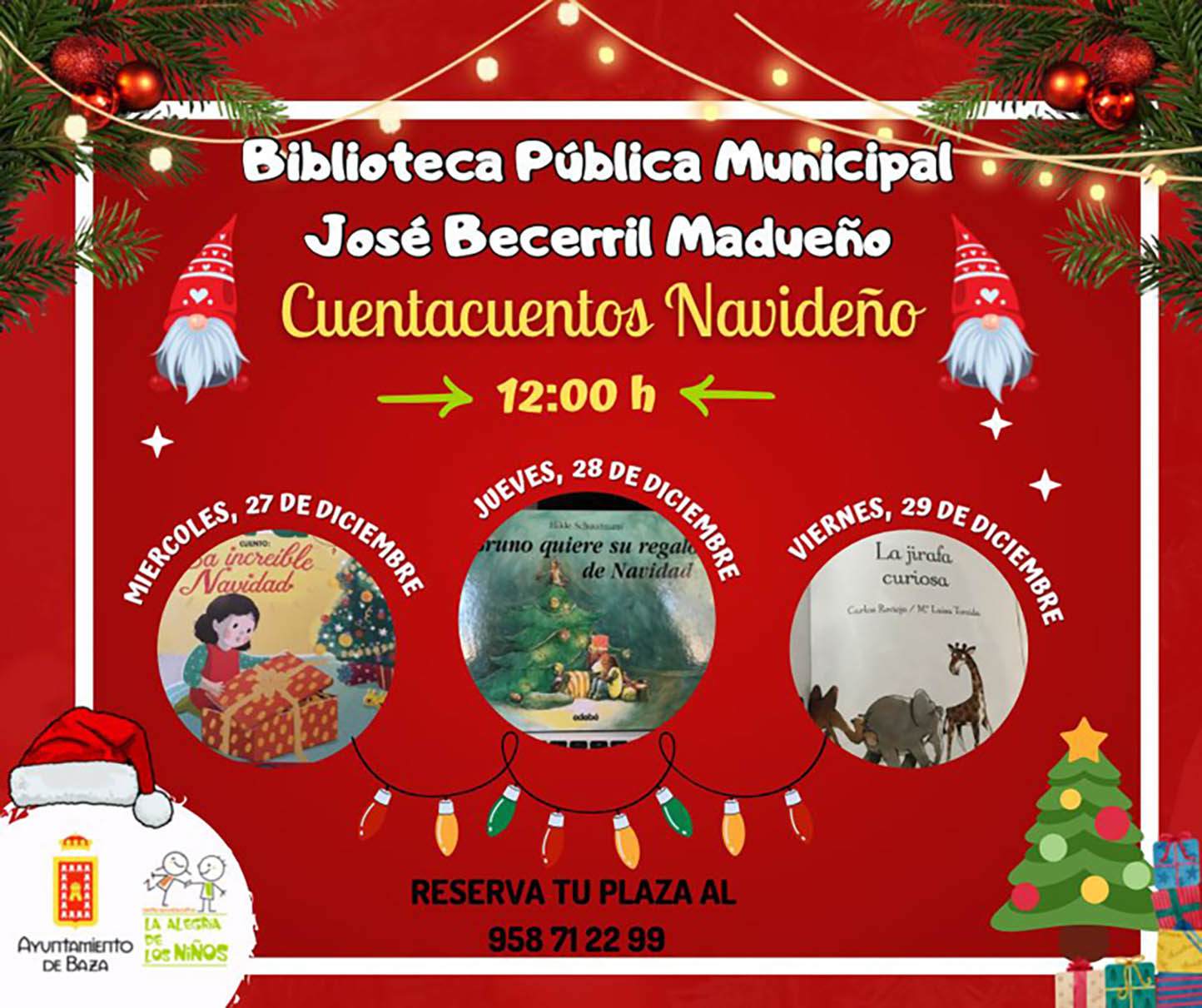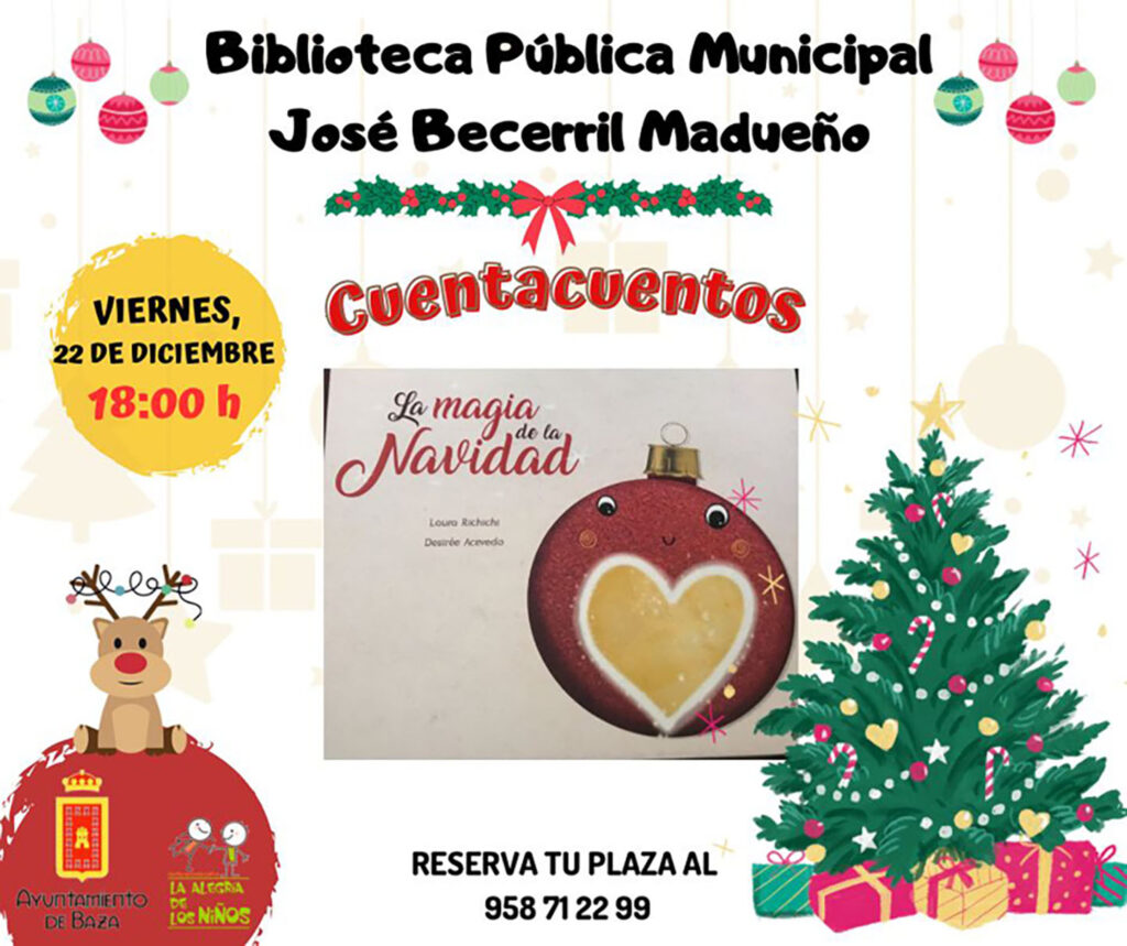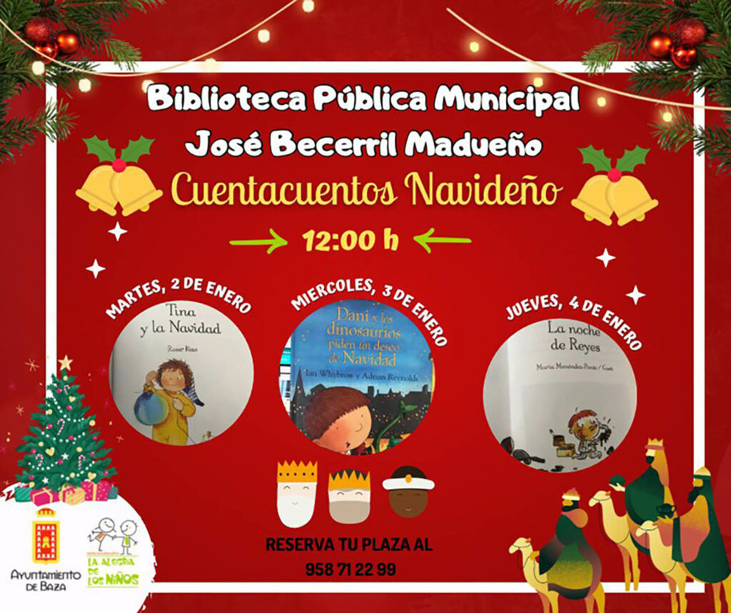 La Biblioteca Municipal ha preparado una extraordinaria programación de cuentacuentos navideños, los días 22, 27, 28 y 29 de diciembre y 2, 3 y 4 de enero. La Biblioteca Pública Municipal “José Becerril Madueño” ha preparado una programación especial para esta Navidad repleta de cuentacuentos, todos ellos con temática navideña y muy, muy divertidos.