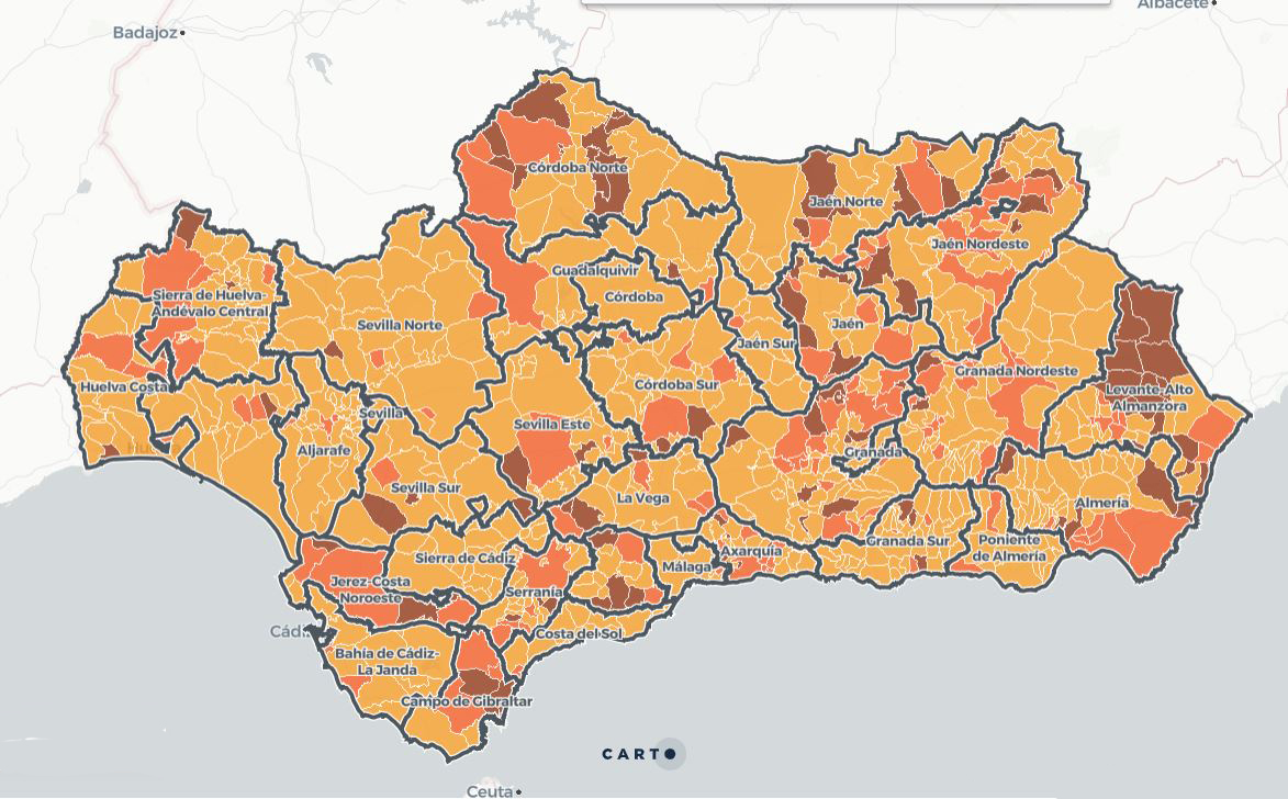 El Instituto de Estadística de Andalucía actualizaba ayer las tasas de incidencia del coronavirus por municipios. Después de que el viernes se anunciaran las nuevas medidas para los que superaran la tasa 500, con el confinamiento perimetral, y la tasa 1.000, ayer se ponían al día y el incremento de pueblos en nivel de riesgo aumentó tras el fin de semana.