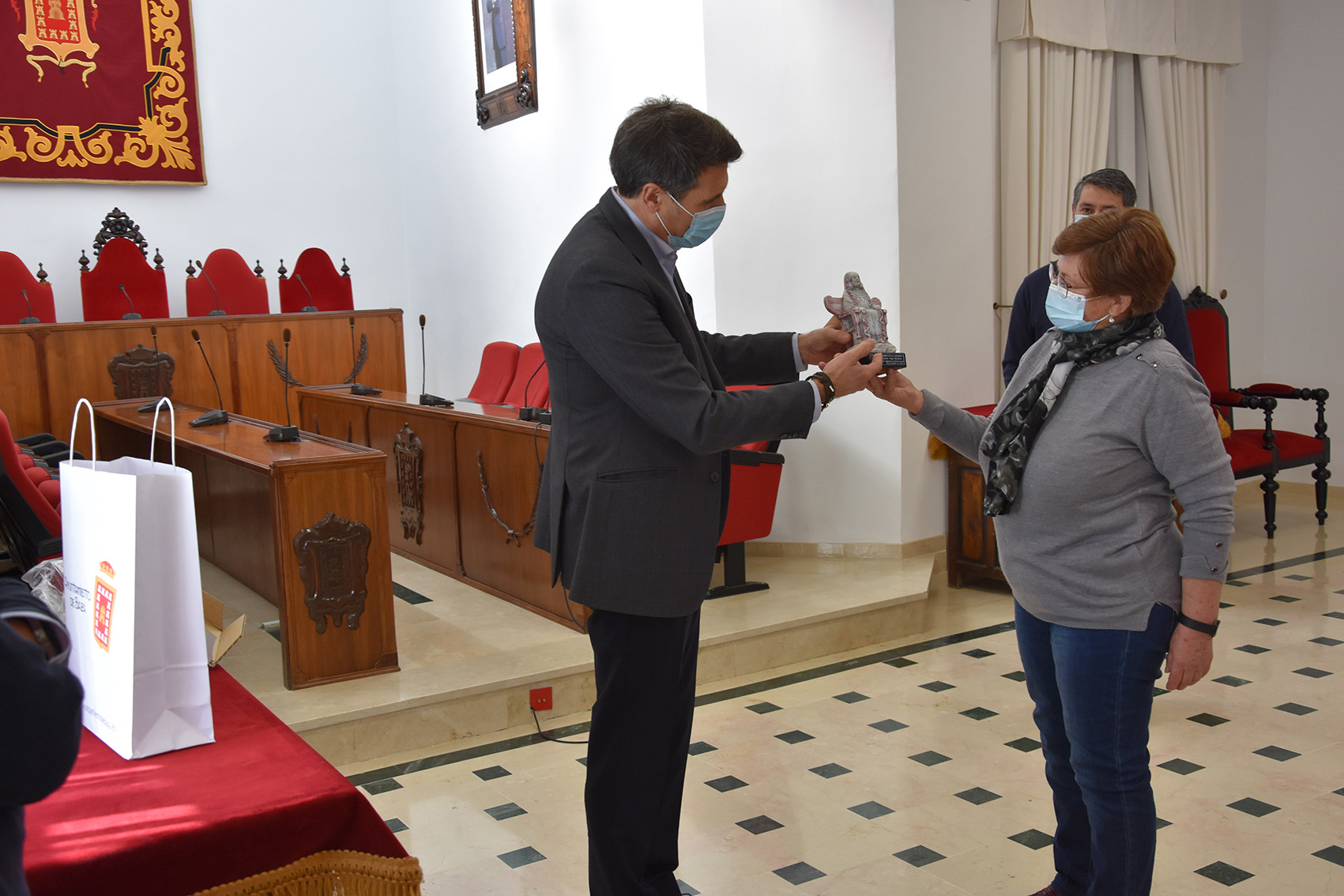 Mari Carmen Vega del anejo de Salazar o Río de Baza, Antonio Sánchez de Baúl, Manuel Rodríguez de La Jamula, Antonio Sánchez de Benacebada y Manuel Lizarte de El Baíco, mantuvieron la semana pasada un encuentro con el regidor, como reconocimiento a la labor que realizan, les entregó una réplica de la Dama de Baza realizada por el artista Ramón Salarich.