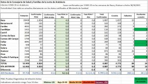 La otra novedad que se sumaba en esta ocasión era la de que Baza veía desaparecer el último caso de la tasa a 7 días, donde sí que se alcanzan los 0 casos por 100.000 habitantes en cuanto a confirmados en los últimos 7 días.