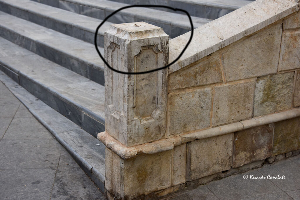 Una “hazaña” que seguramente debió realizarse en la noche del sábado al domingo, cuando sus cobardes autores volvieron a ampararse en la noche para trasladar, hasta la escalinata la base que allí abandonaron, sin que se conozca el paradero de la pieza esférica que remataba la estructura del pequeño muro que existe al final de la escalera anexa al pilar.