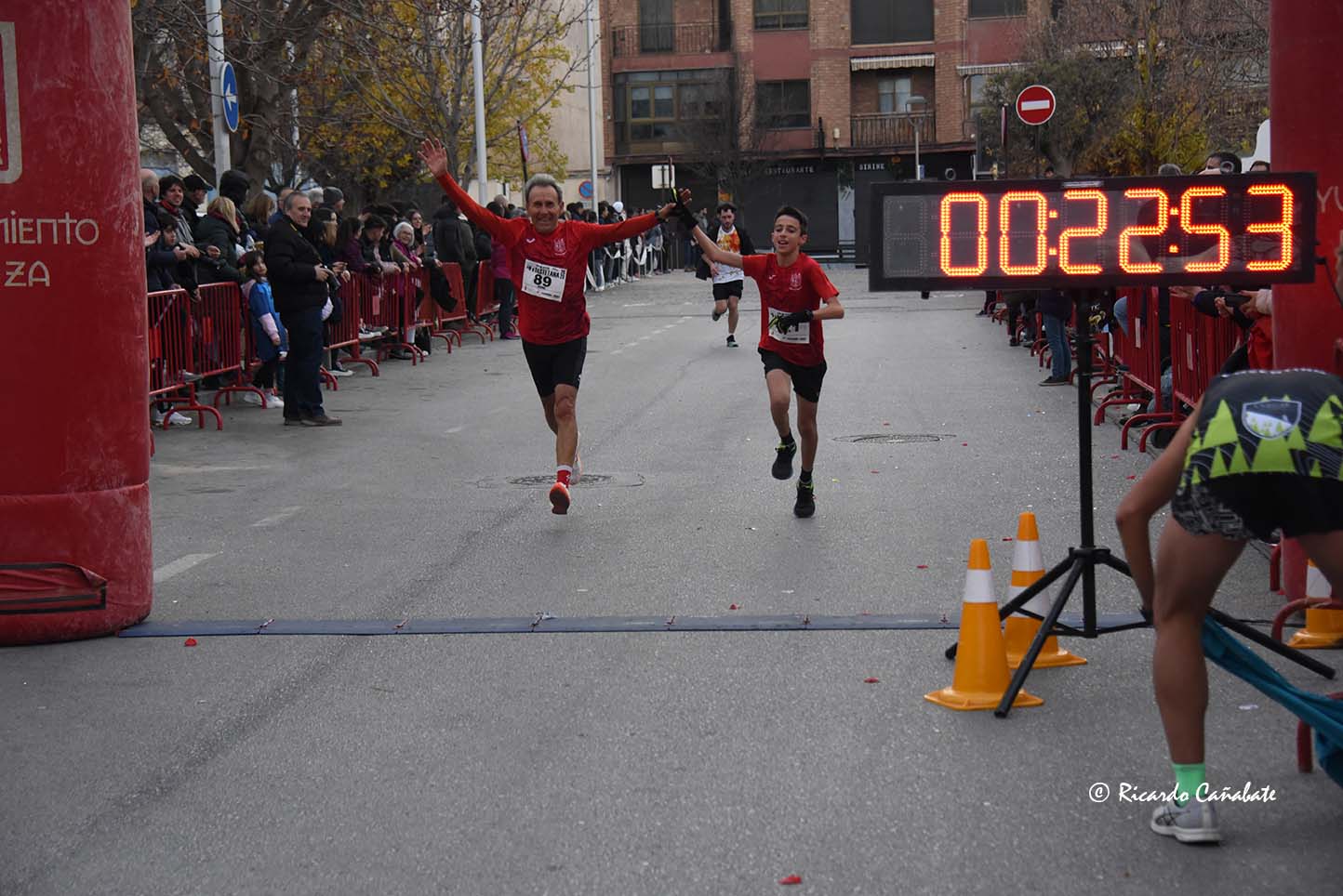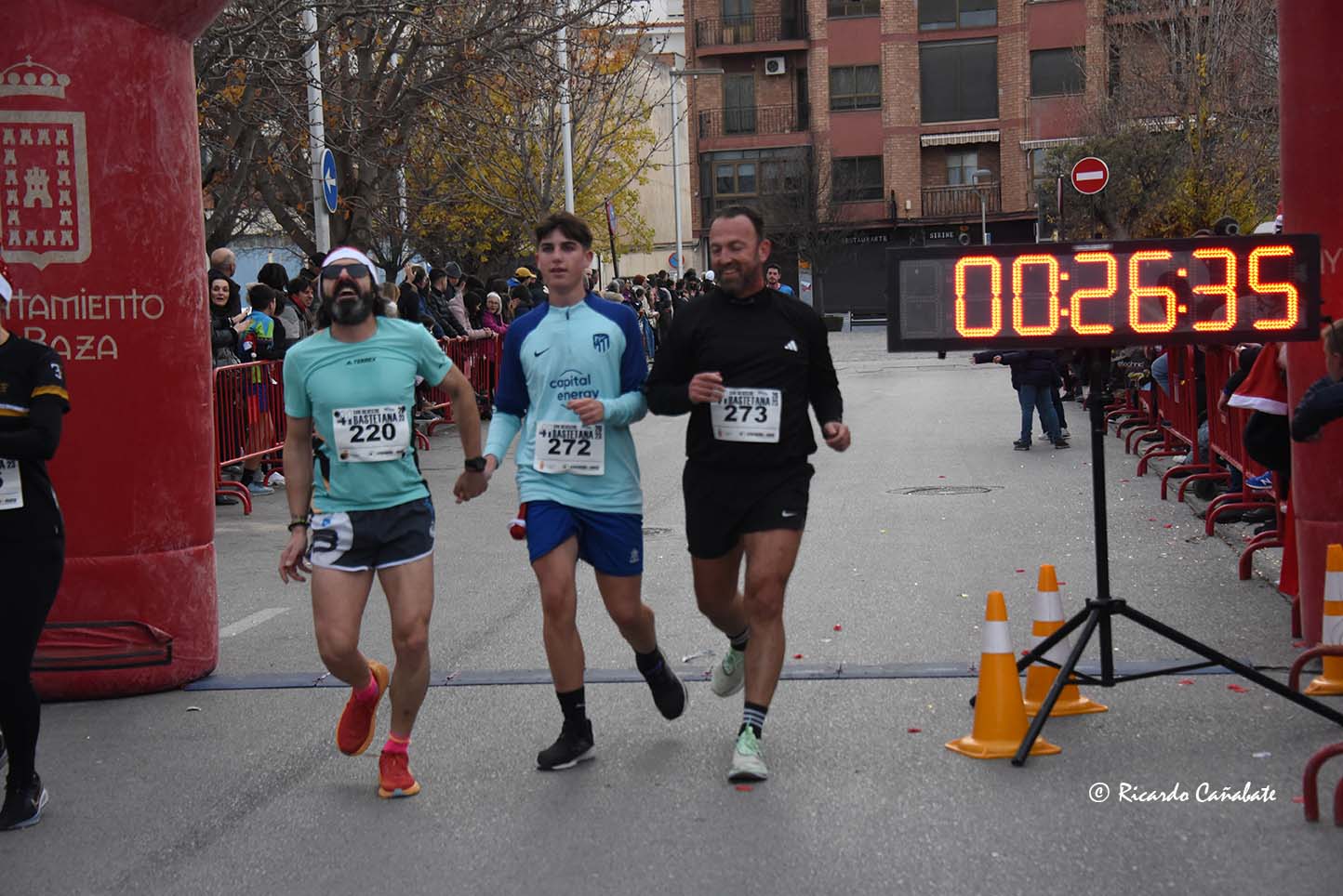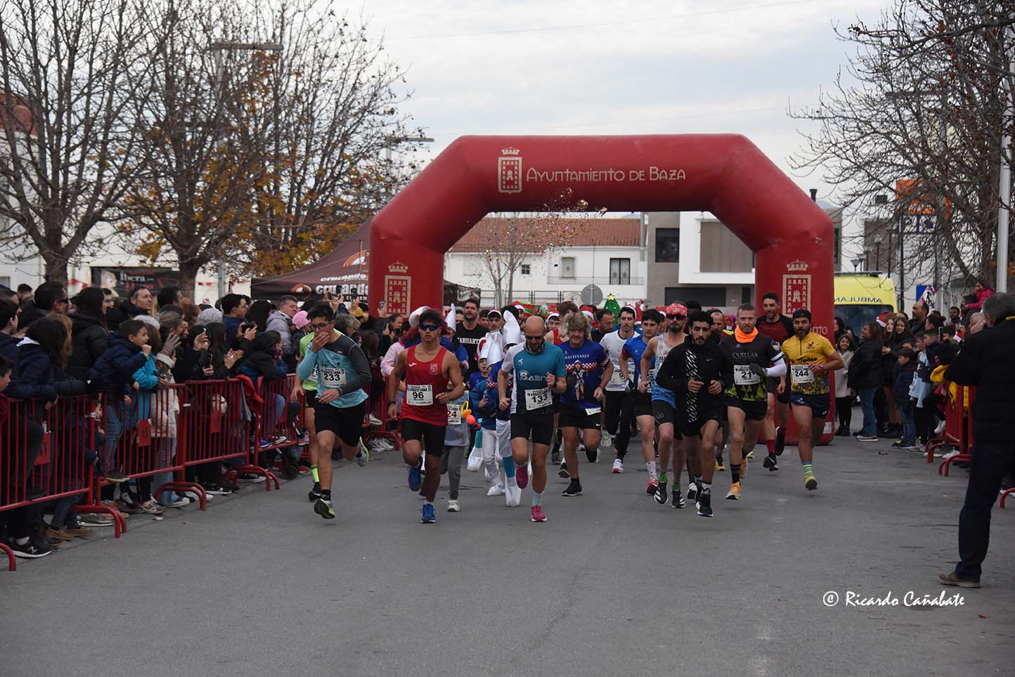 Media hora después se iniciaba la carrera de la categoría absoluta, en la que participaron un buen número de atletas sin portar el dorsal oficial y no pocos de ellos los que nos comentaron su pesar por no haberse podido inscribir en el plazo fijado, con cierre al mediodía del viernes 29, que sorprendió e impidió dar oficialidad a su participación, por ejemplo, a quienes viajaron a Baza ese mismo día y confiaban en poderlo hacer a tiempo, sin que faltaran los que nos recordaban ediciones en que se inscribieron el mismo día de la prueba. Destacar también la gran cantidad de atletas disfrazados y aportando un especial colorido y motivo de disfrute a una carrera que terminó sin incidencias destacables.