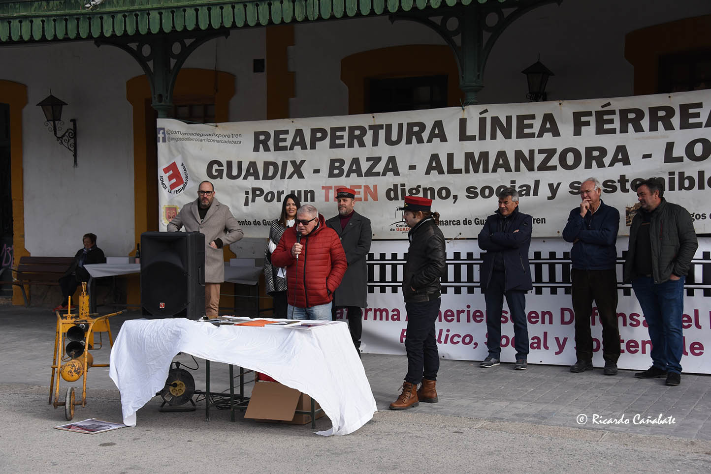 El acto, convocado por la citada asociación y Guadix por el Tren, estuvo conducido por el presidente de la asociación bastetana, Antonio F. Martínez, quien respaldó su conversión en un acto de rebeldía y de exigencia de responsabilidades al Gobierno por la injustificada parálisis del Estudio informativo de reapertura de la línea férrea Guadix-Baza-Almanzora-Lorca, que en estos momentos debería estar finalizándose, pero que sigue incomprensiblemente estancado en la fase cero.