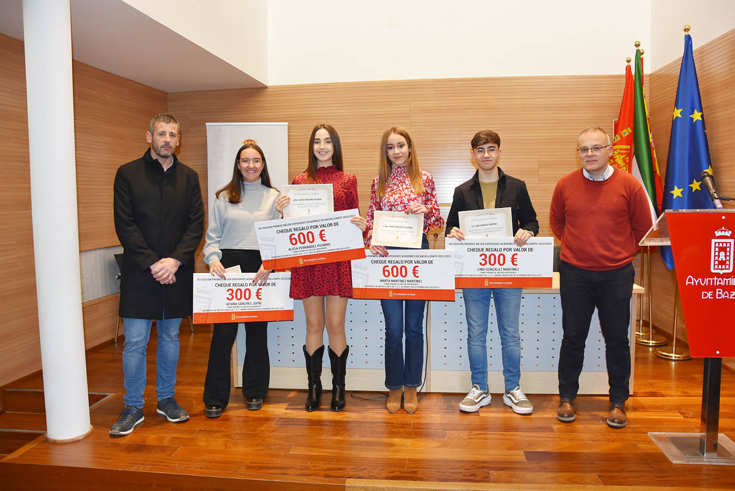 Marta Martínez, del “Alcrebite”; Alicia Fernández, del “José de Mora” y Lino González y Aitana Fernández, del “Jiménez Montoya”, mejores expedientes de Bachillerato 2022-2023. El pasado viernes, 29 de diciembre, tenía lugar, en el auditorio del Museo Arqueológico Municipal, la entrega de la decimocuarta edición de los premios a los mejores expedientes académicos de Bachillerato que concede el Ayuntamiento de Baza, en este caso correspondientes al curso 2022-2023.