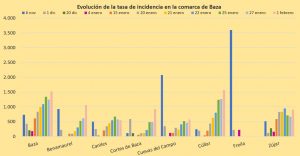 La tasa de incidencia sigue subiendo en Baza y sólo la implicación de todos podrá lograr una bajada suficiente para evitar la continuidad del cierre de establecimientos no esenciales. Como de todos es sabido, la aplicación de las medidas restrictivas que obligan al cierre de los comercios no esenciales y la hostelería tienen una relación directa con la tasa de incidencia de los nuevos positivos que se van produciendo en los últimos 14 días, por 100.000 habitantes.