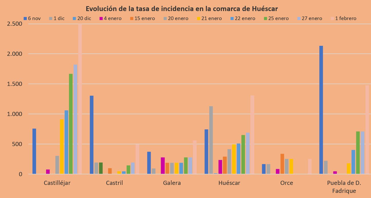Destacable también la subida que se ha producido en las tasas de incidencia, conforme se puede apreciar en la tabla insertada al principio de este Noticiario, previa a la cita de hoy con el Comité Provincial de Alertas, que se reúne esta tarde y, poco nos equivocaremos, con trabajo para aumentar las restricciones en unos cuantos municipios de nuestra provincia.