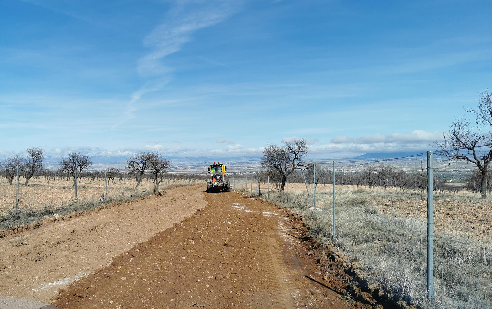 Por otro lado, esta semana se está realizando la mejora de un camino rural del entorno del nacimiento de agua de las Siete Fuentes que conecta con el camino anterior y que da acceso a numerosas fincas agrícolas. La intervención consiste en la nivelación y compactación del firme de tierra y asegurar una parte de una valla perimetral. se realiza con maquinaria de la Mancomunidad y con la contratación de trabajos a una empresa de Baza.
