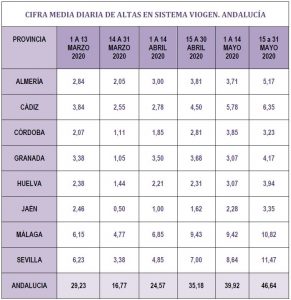 Desde el inicio del estado de alarma, la media diaria de altas en el Sistema VioGen por denuncias de violencia de género objeto de seguimiento ha ido aumentando progresivamente, pasando de 16,7 en la segunda quincena de marzo –al inicio de confinamiento– a 24,5 en la primera quincena de abril; 35,1 en la segunda de ese mismo mes y 39,9 en la primera quincena de mayo. Ya del 16 al 31 de mayo las 46,6 altas registradas reflejan un incremento respecto a las cifras anteriores del estado de alarma de 17,37 puntos más, cuando se contabilizaron 29,23 casos cada día.
