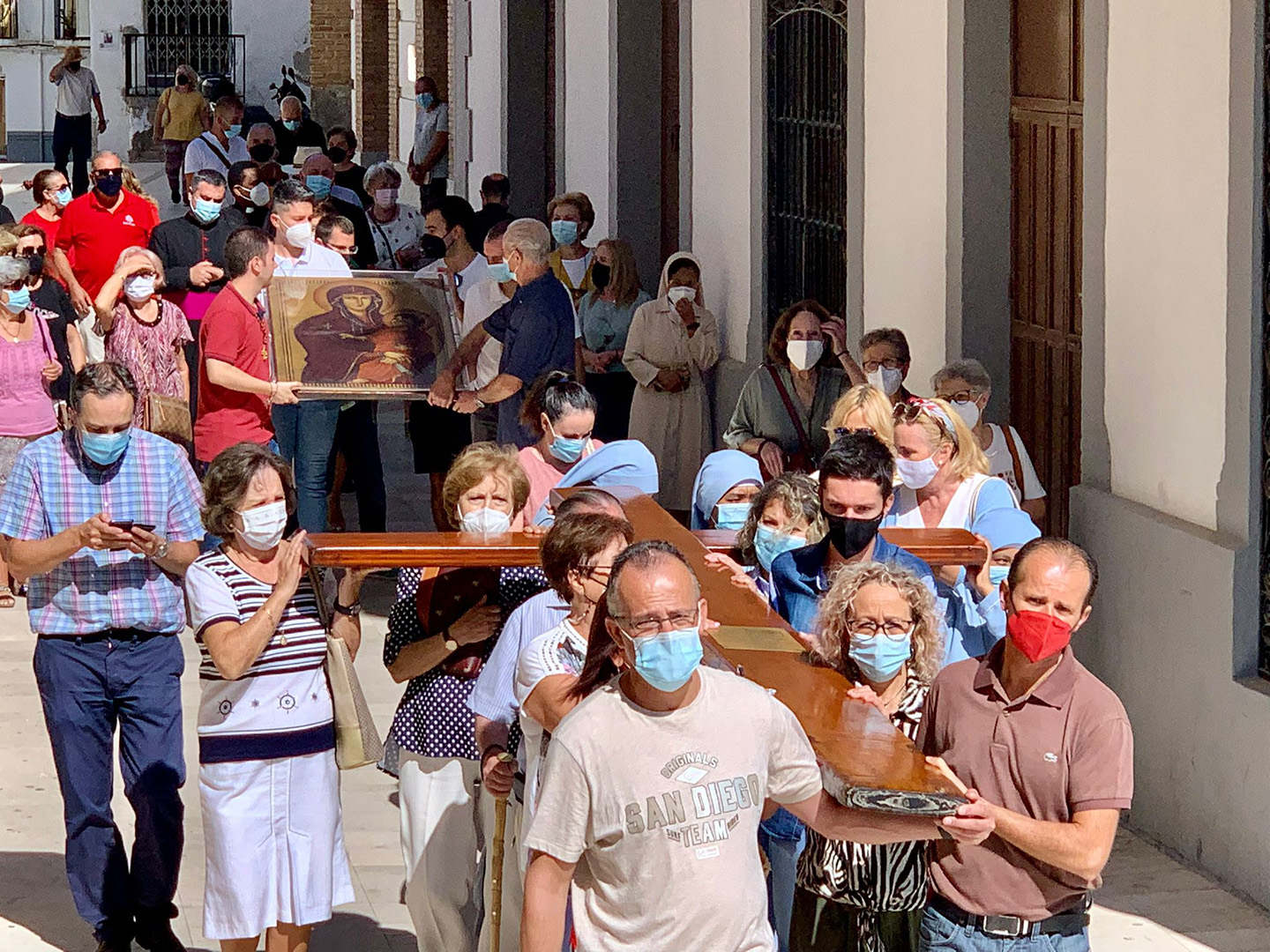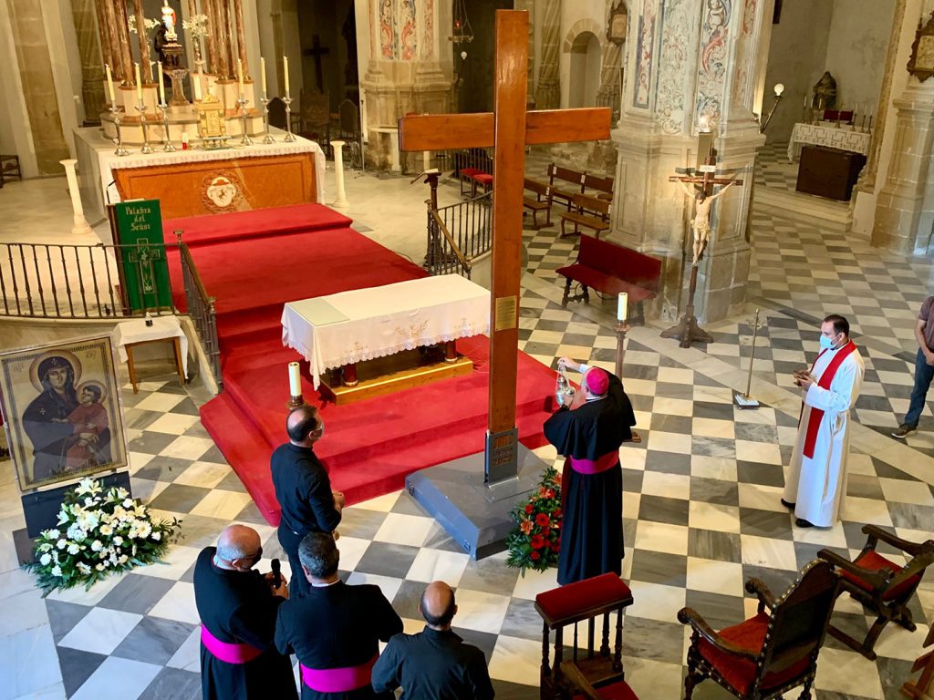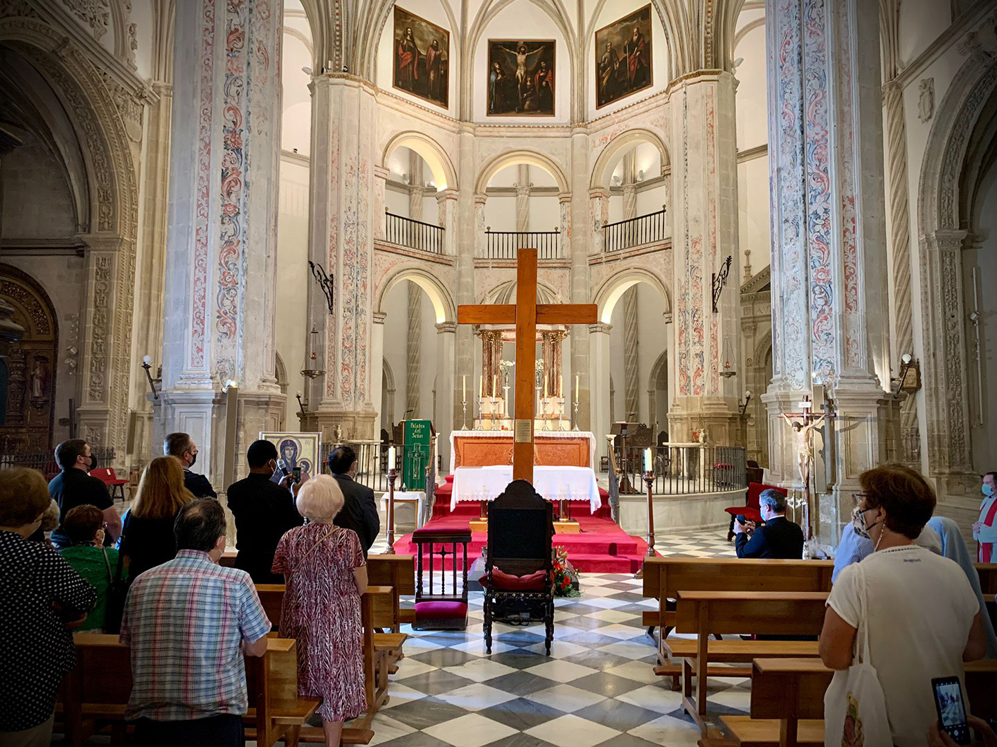 Tras la recepción realizada en la iglesia de la Plaza de la Merced, ante la patrona bastetana, la Cruz y el icono fueron portados por un grupo de jóvenes de las Hermandades y Cofradías de Baza hasta la iglesia Mayor, donde se procedió al rezo del Ángelus, permaneciendo allí hasta las 14:00 horas, venerados por fieles de las cuatro parroquias de la ciudad.