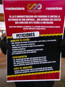 Por todo estos motivos, pedimos al Ayuntamiento Junta de Andalucía y Gobierno Central que rectifique, que se siente con el sector y planifiquemos todos juntos el plan de actuación para no seguir errando y que podamos volver a la normalidad lo antes posible siguiendo creando empleo y riqueza en nuestras comarcas; todos juntos y a una saldremos de ésta.