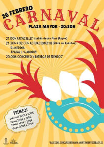 Las actividades continúan a partir de las nueve de la noche con el Carnaval para todos, para el que también se ha programado un pasacalles que saldrá de la Plaza Mayor. Desde las nueve y media habrá actuaciones en la Plaza de Abastos con ‘Dj Medina’ y ‘Apaga y vámonos’ y a las once tendrá lugar el concurso y entrega de premios.