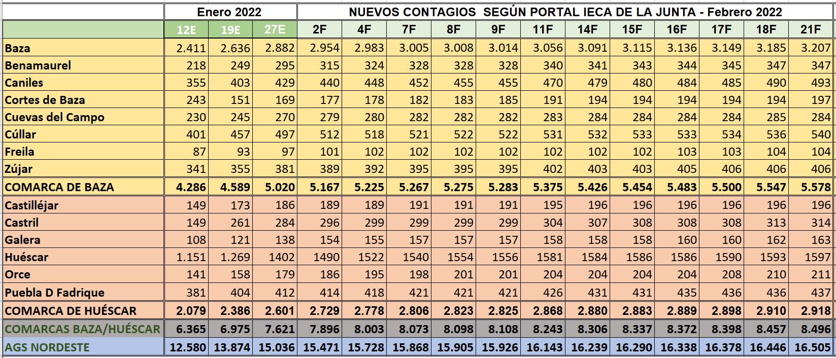 Crecimiento mantenido en las comarcas de Baza y Huéscar y en el AGS Nordeste tras el fin de semana. Un fin de semana en el que no ha habido datos nuevos, tras lo que se añaden hoy los datos recogidos a lo largo del viernes, sábado y domingo, con un resultado de crecimiento moderado y contenido que mejora la situación anterior.