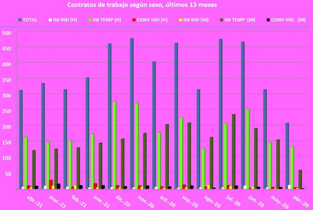 Destacar también los 31 nuevos contratos indefinidos que se firmaron en el último mes, 5 nuevos para hombres y 4 para mujeres, además de 18 contratos de hombres y 4 de mujeres que estaban vigentes en otras modalidades y se acabaron transformando también en indefinidos, en una ciudad donde los contratos temporales son mayoría en este tipo de estadísticas.